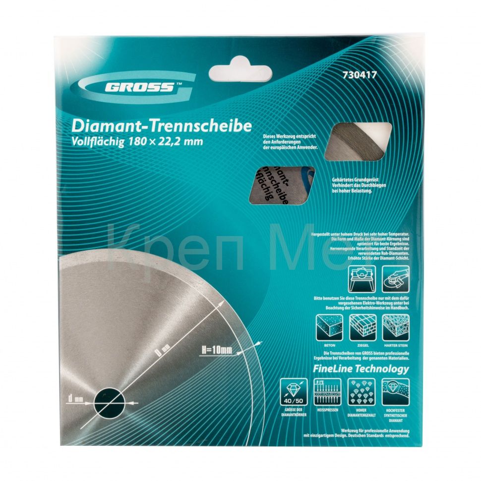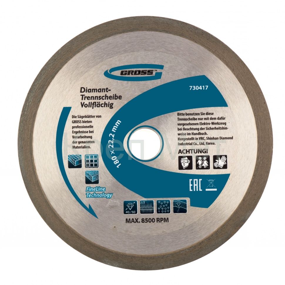 Диск алмазный, 180 х 22.2 мм, сплошной, мокрая резка Gross