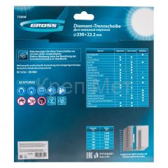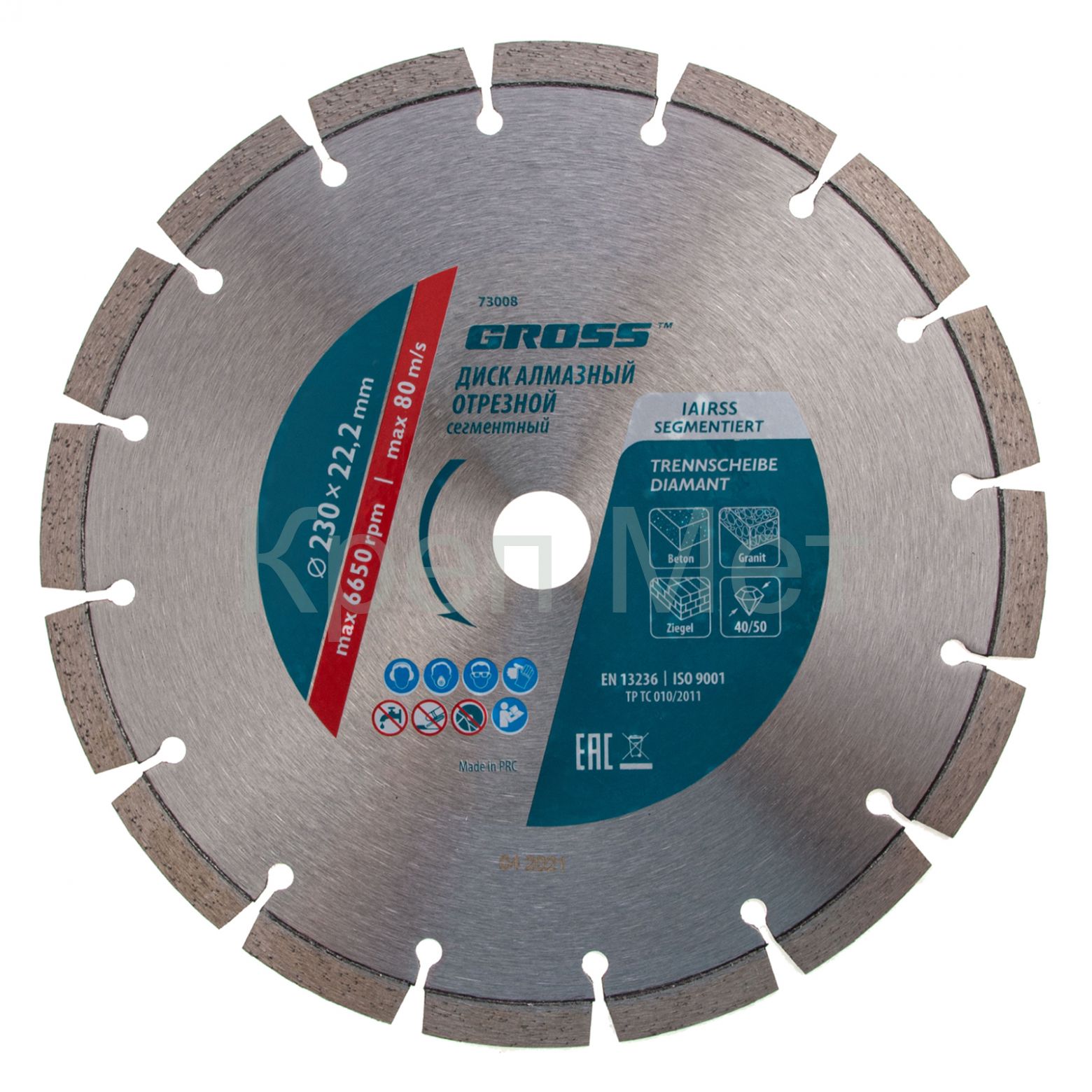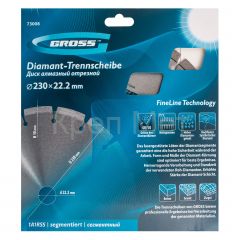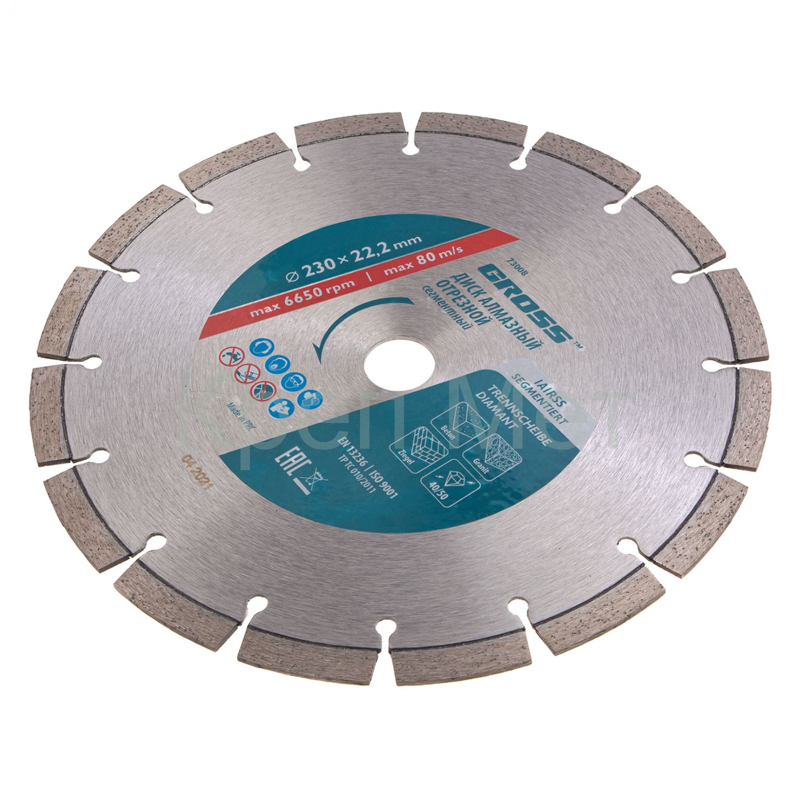 - Диск алмазный, 230 х 22.2 мм, лазерная приварка сегментов, сухая резка Gross
