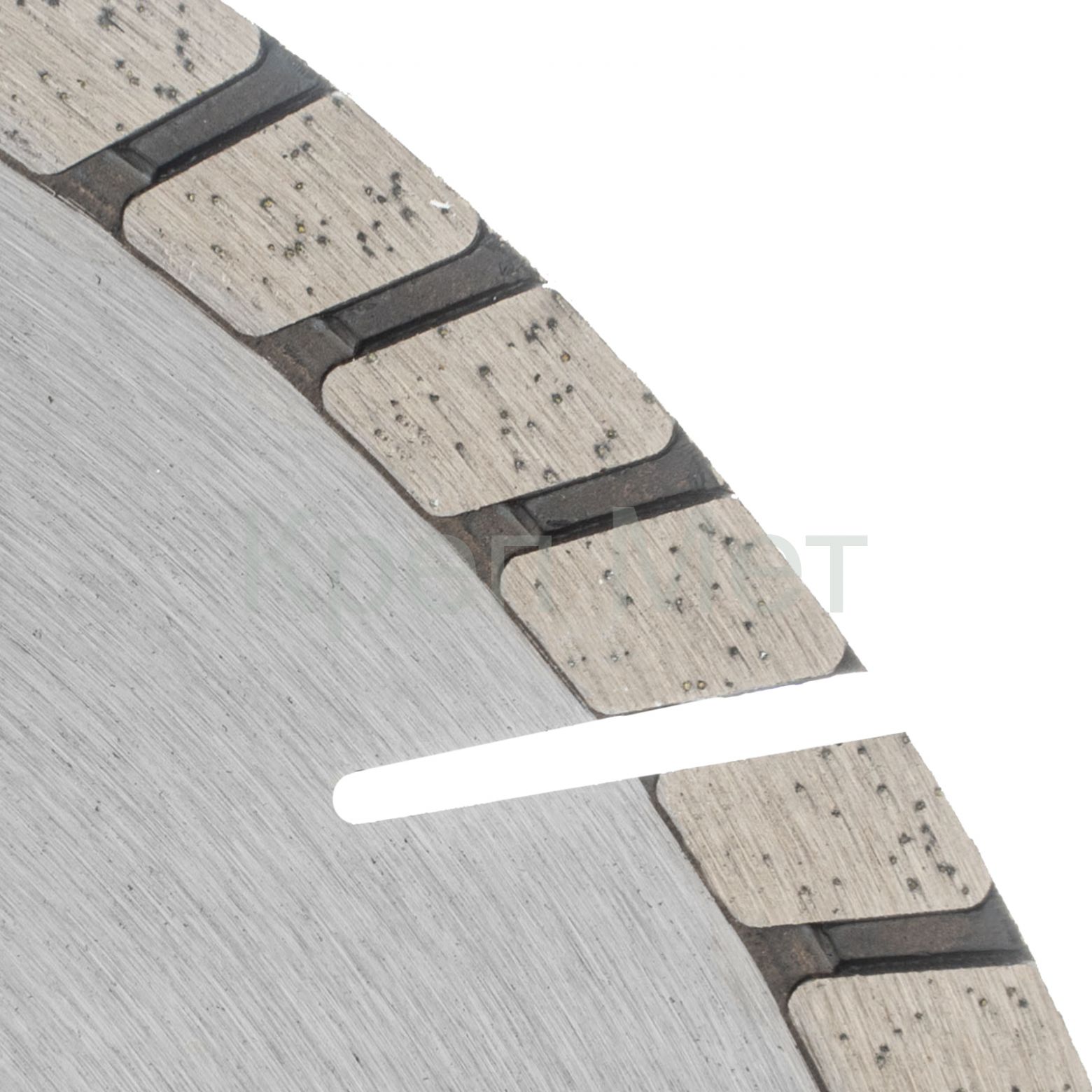 - Эффективная работа — благодаря турбо-сегментной форме диск быстро режет материалы, в т.ч. армированный бетон, водяное охлаждение не требуется.