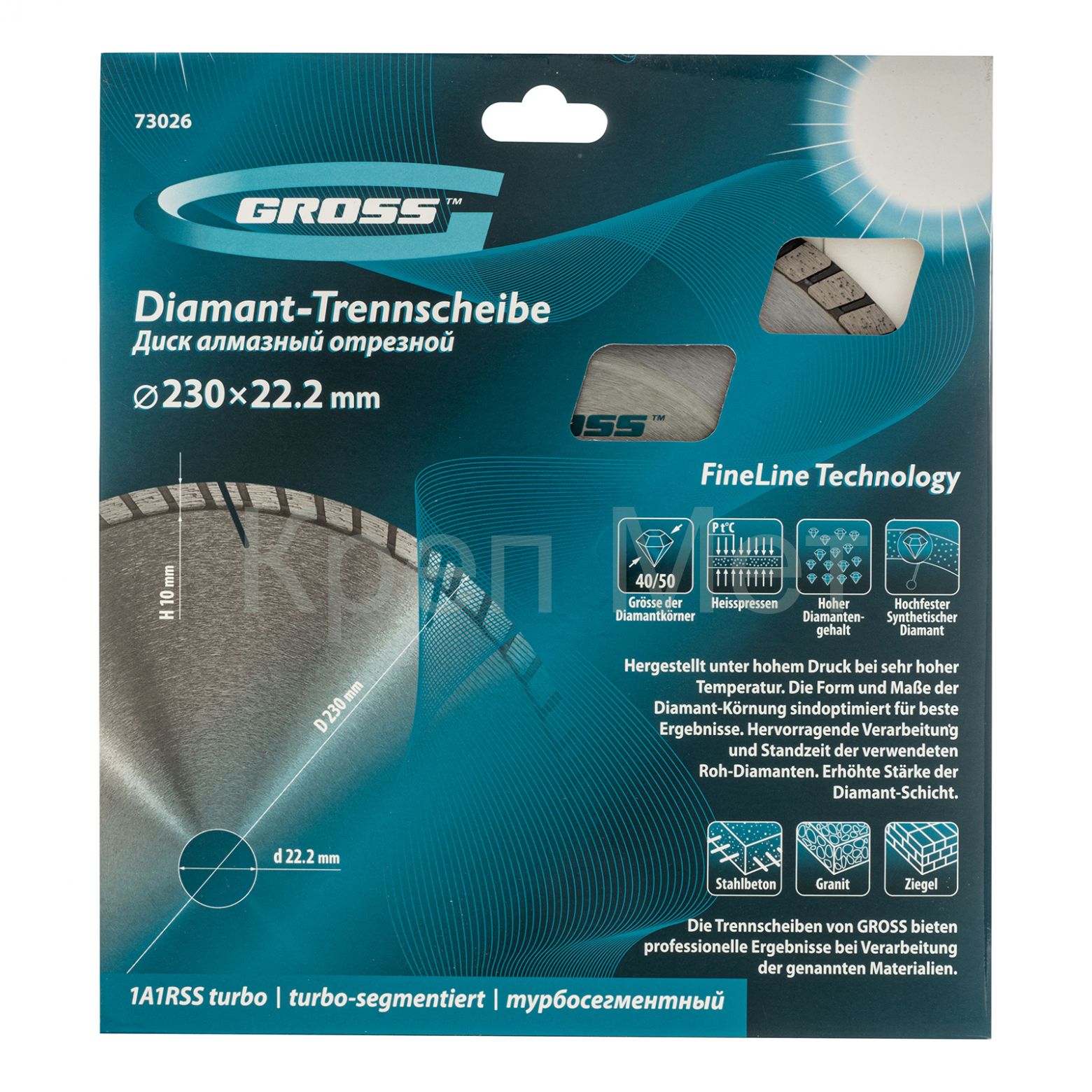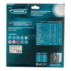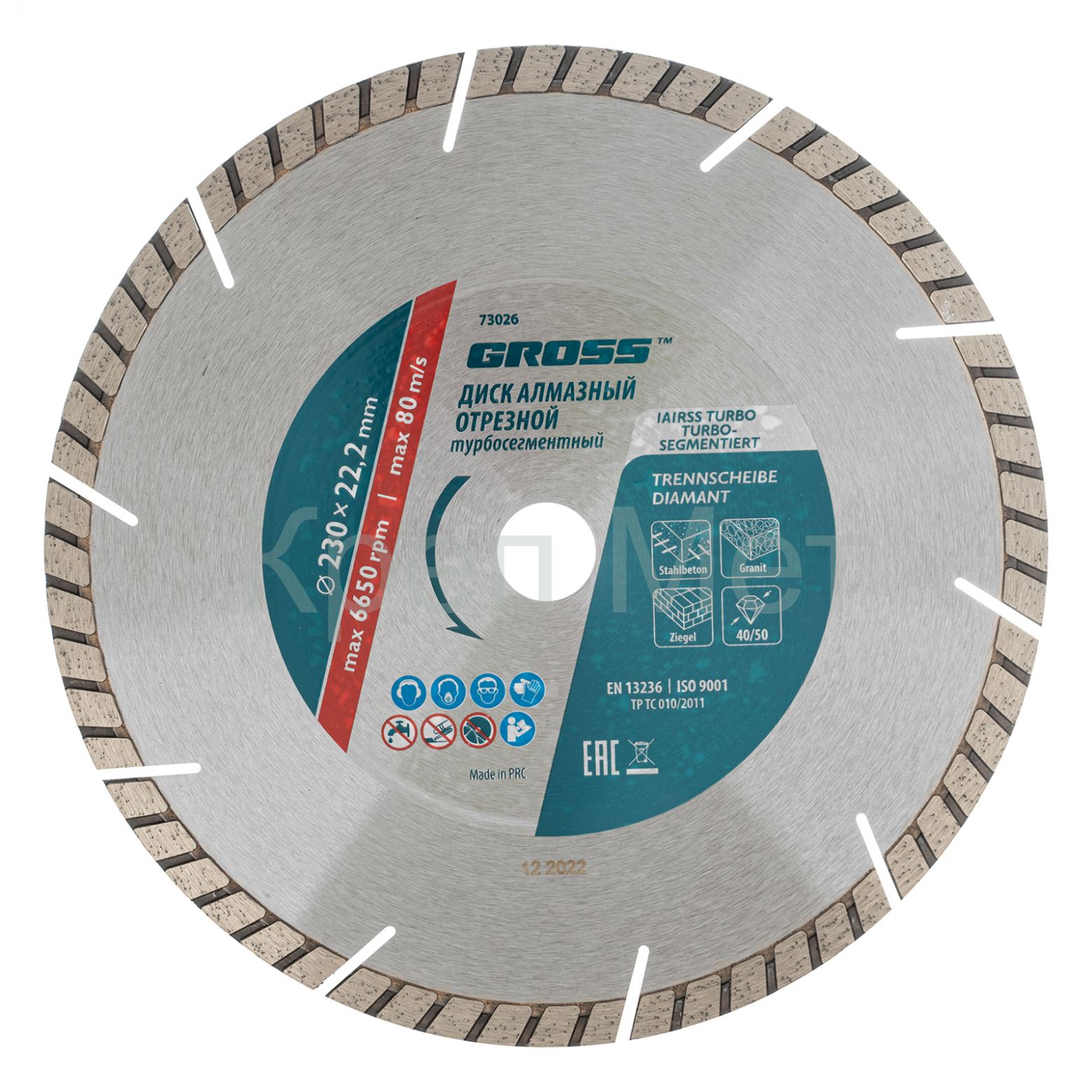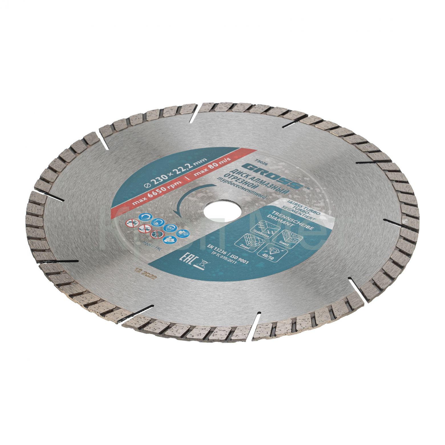 - Диск алмазный, 230 х 22.2 мм, турбо-сегментный, сухая резка Gross