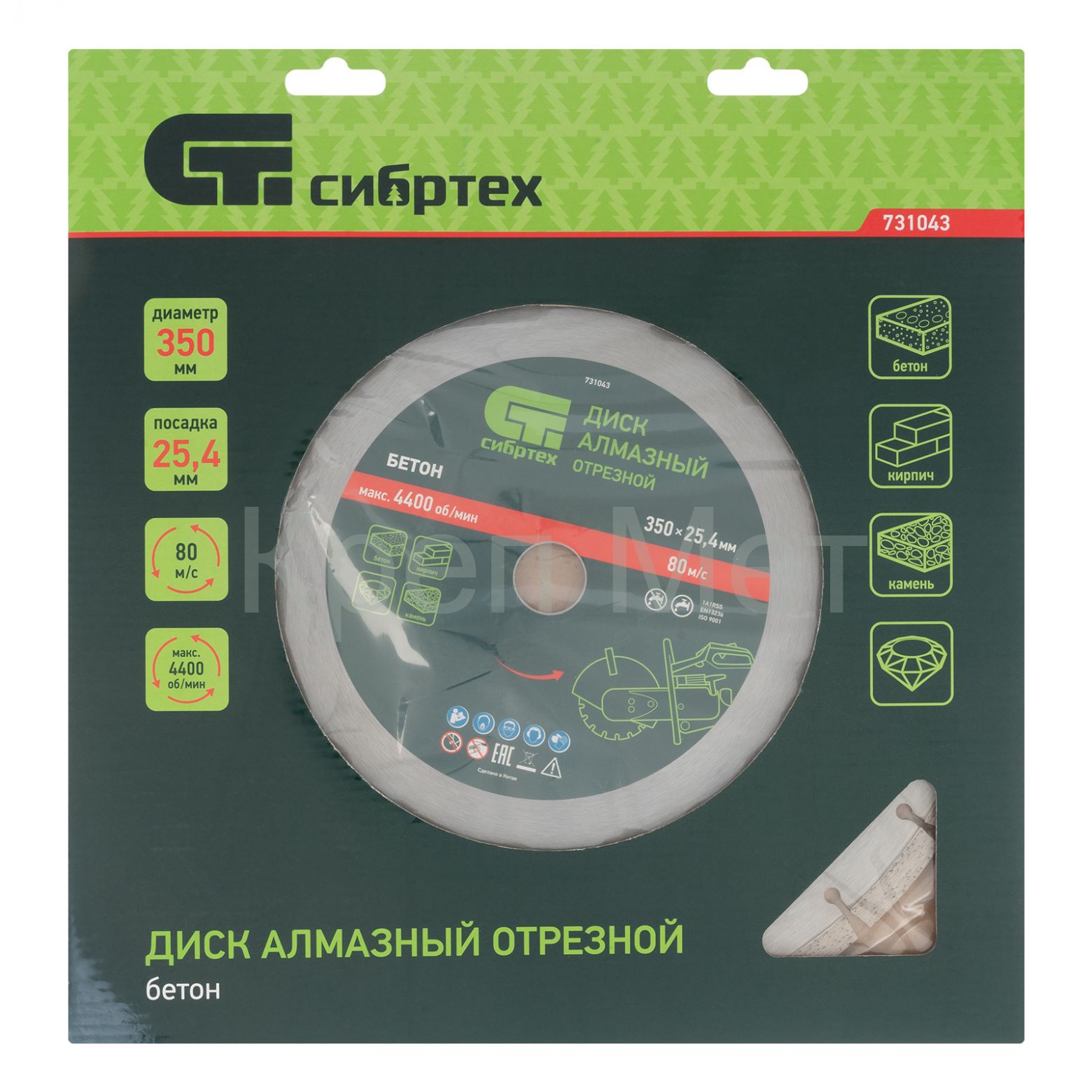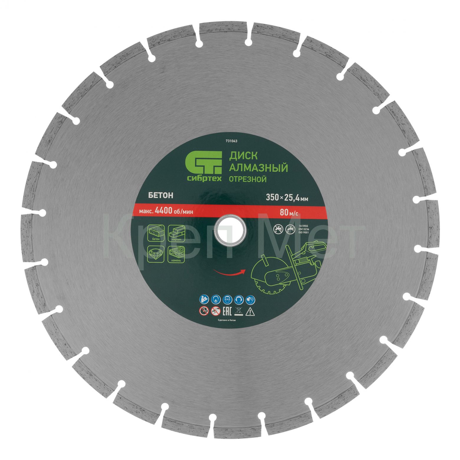 - Диск алмазный 350 х 25.4 мм, "Бетон", сухой/мокрый рез Сибртех