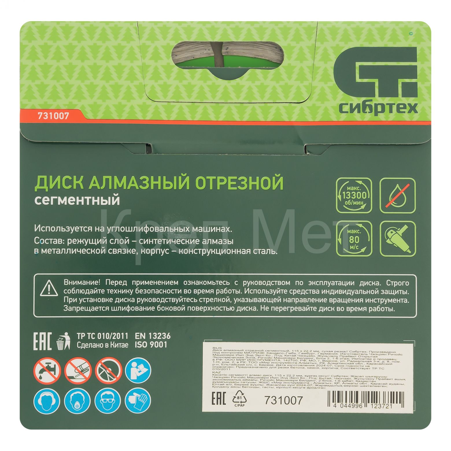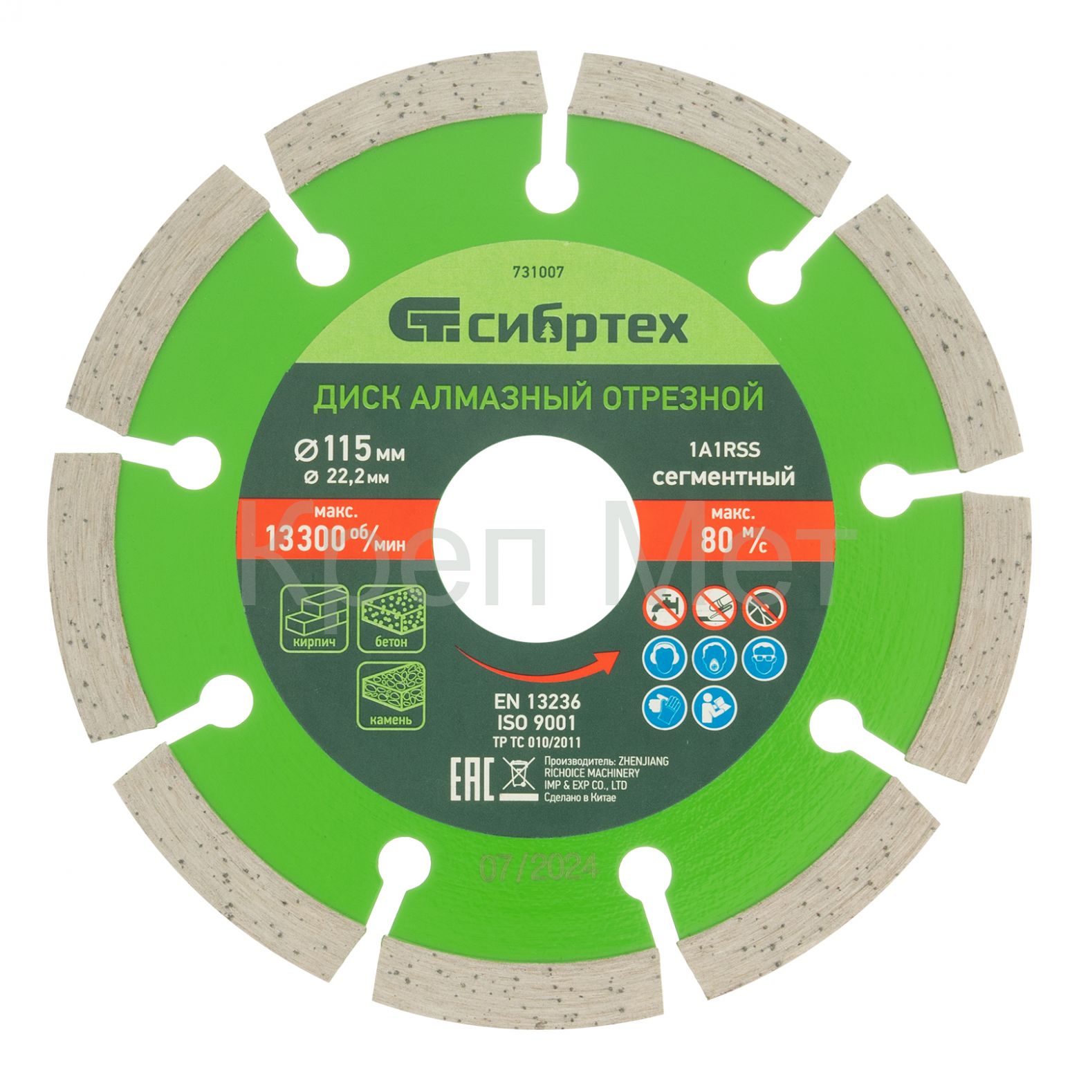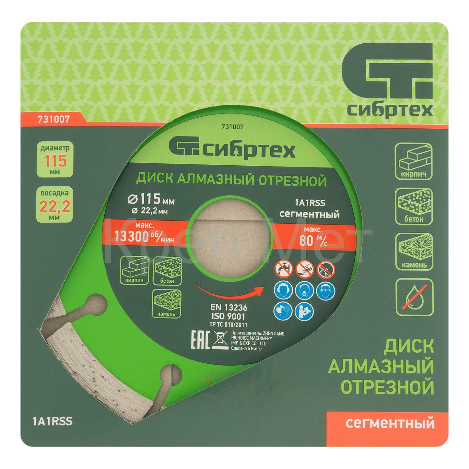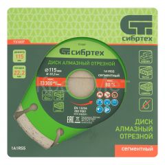 - Диск алмазный, отрезной сегментный, 115 х 22.2 мм, сухая резка Сибртех