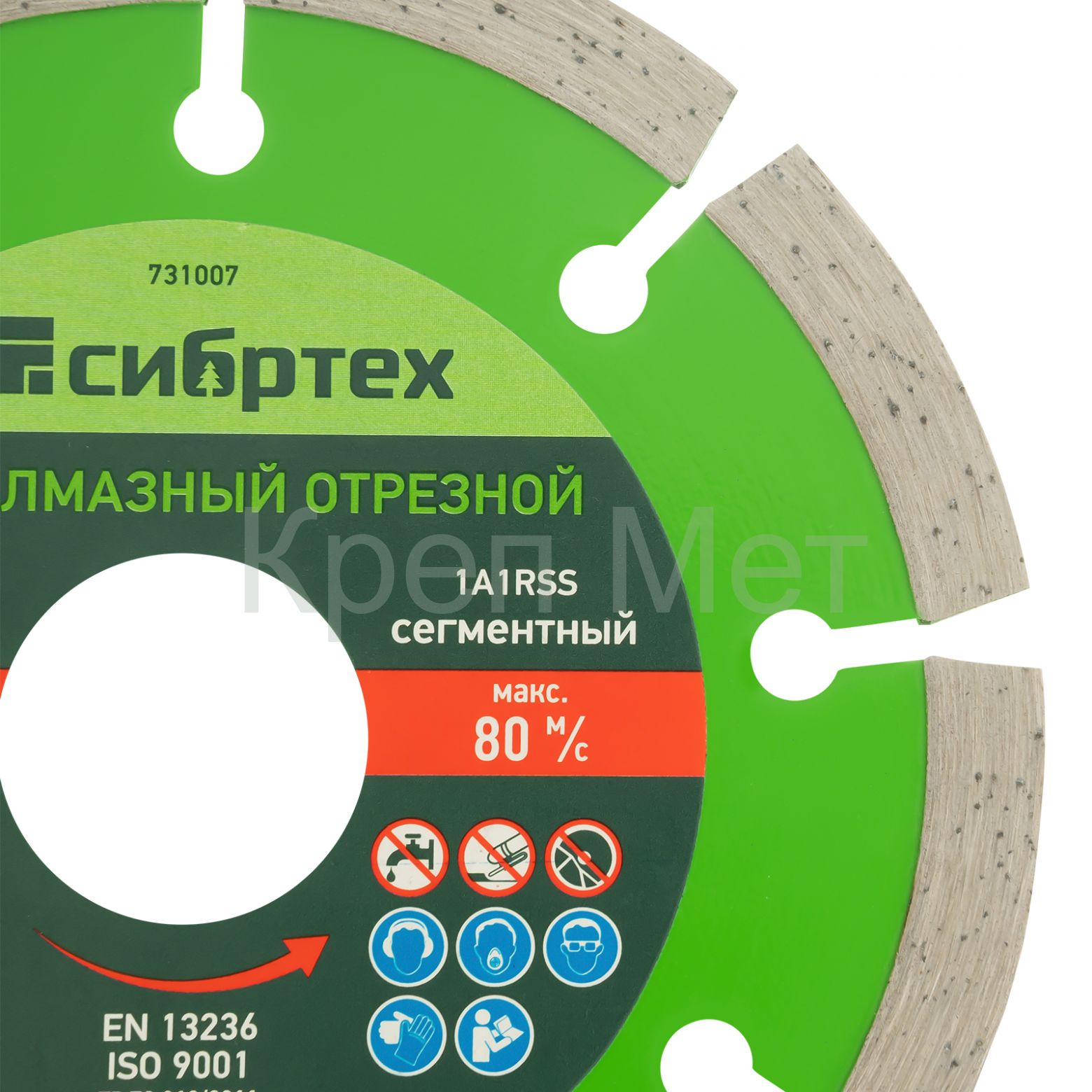 Сегментный отрезной алмазный диск Сибртех 731007 диаметром 115 х 22,2 мм применяется для сухой резки бетона, камня, шлакоблока, тротуарной плитки и кирпича. Устанавливается на углошлифовальную машину с посадочным диаметром 22,2 мм. Подходит для интенсивной работы, оптимален для решения бытовых задач.