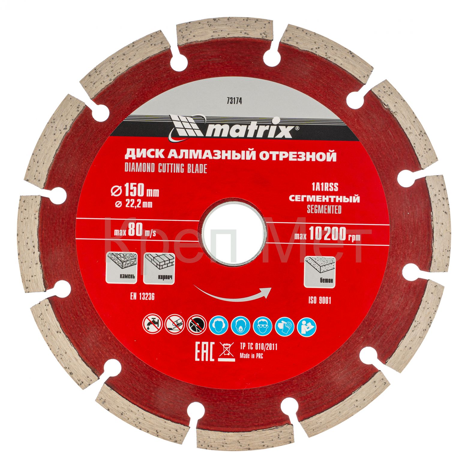 - Диск алмазный, отрезной сегментный, 150 х 22.2 мм, сухая резка Matrix Professional