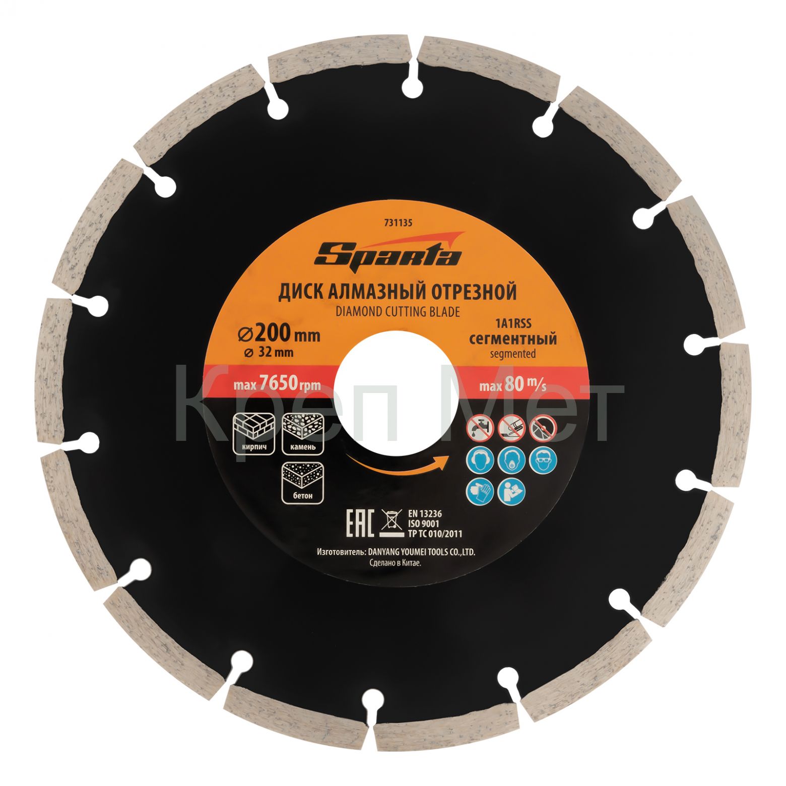 - Диск алмазный, отрезной сегментный, 200 х 32 мм, сухая резка Sparta