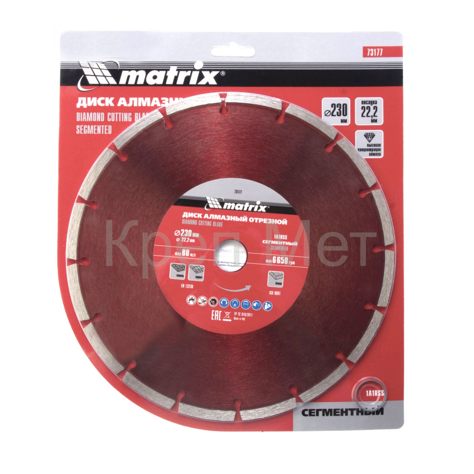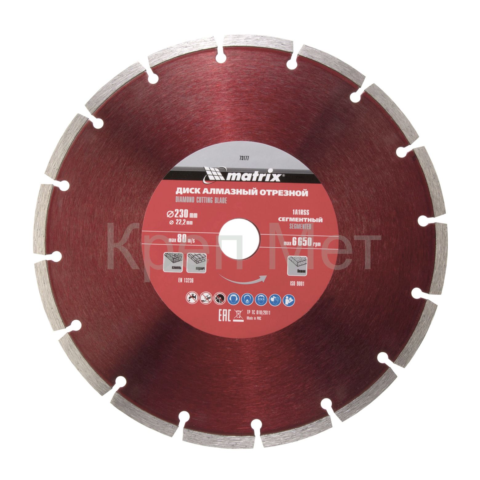 Диск алмазный, отрезной сегментный, 230 х 22.2 мм, сухая резка Matrix Professional