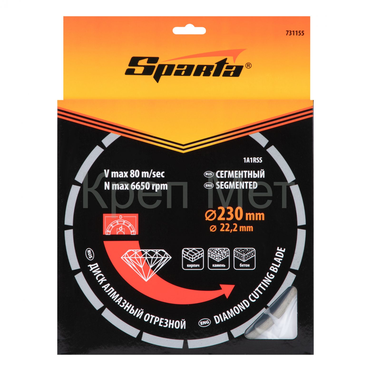 - Диск алмазный, отрезной сегментный, 230 х 22.2 мм, сухая резка Sparta