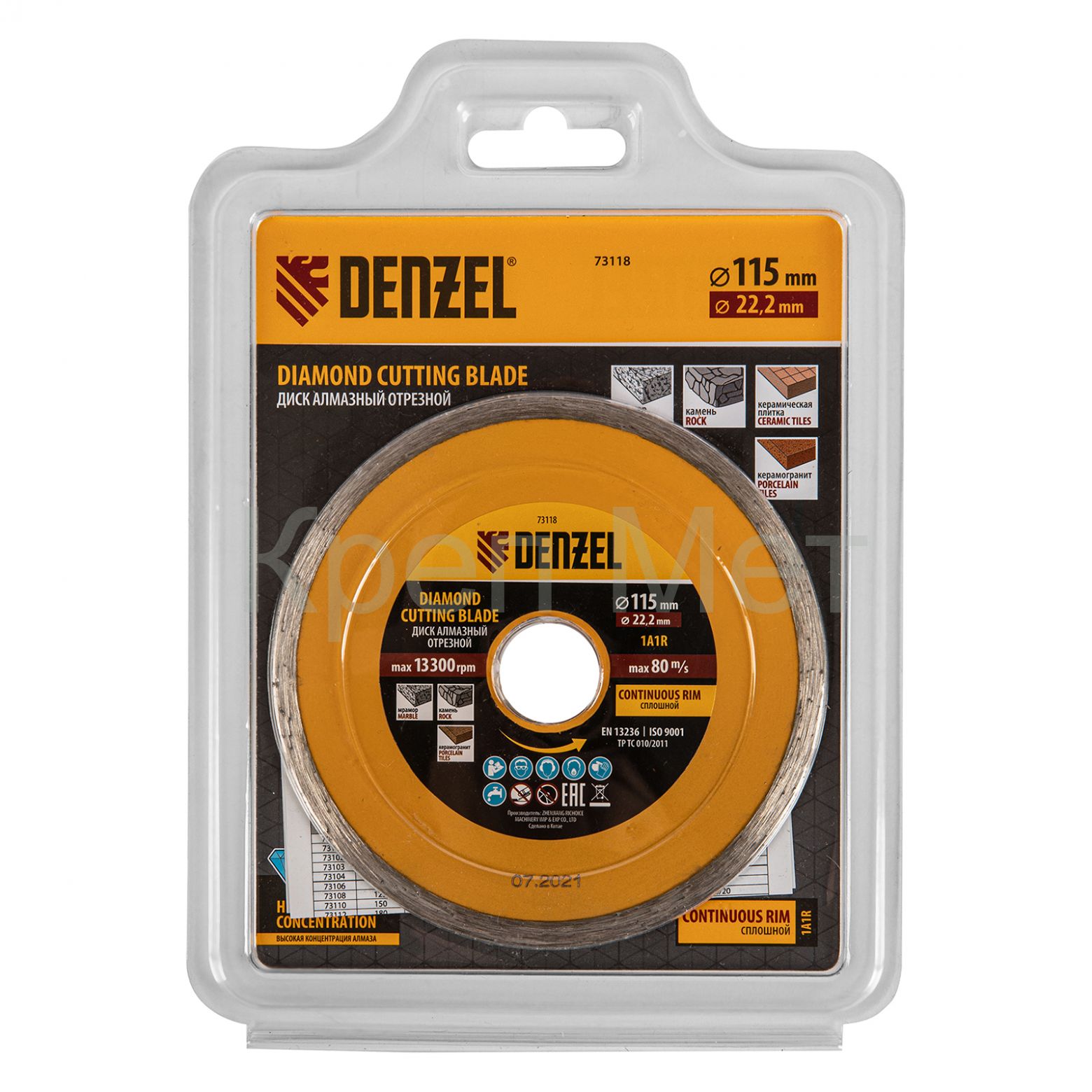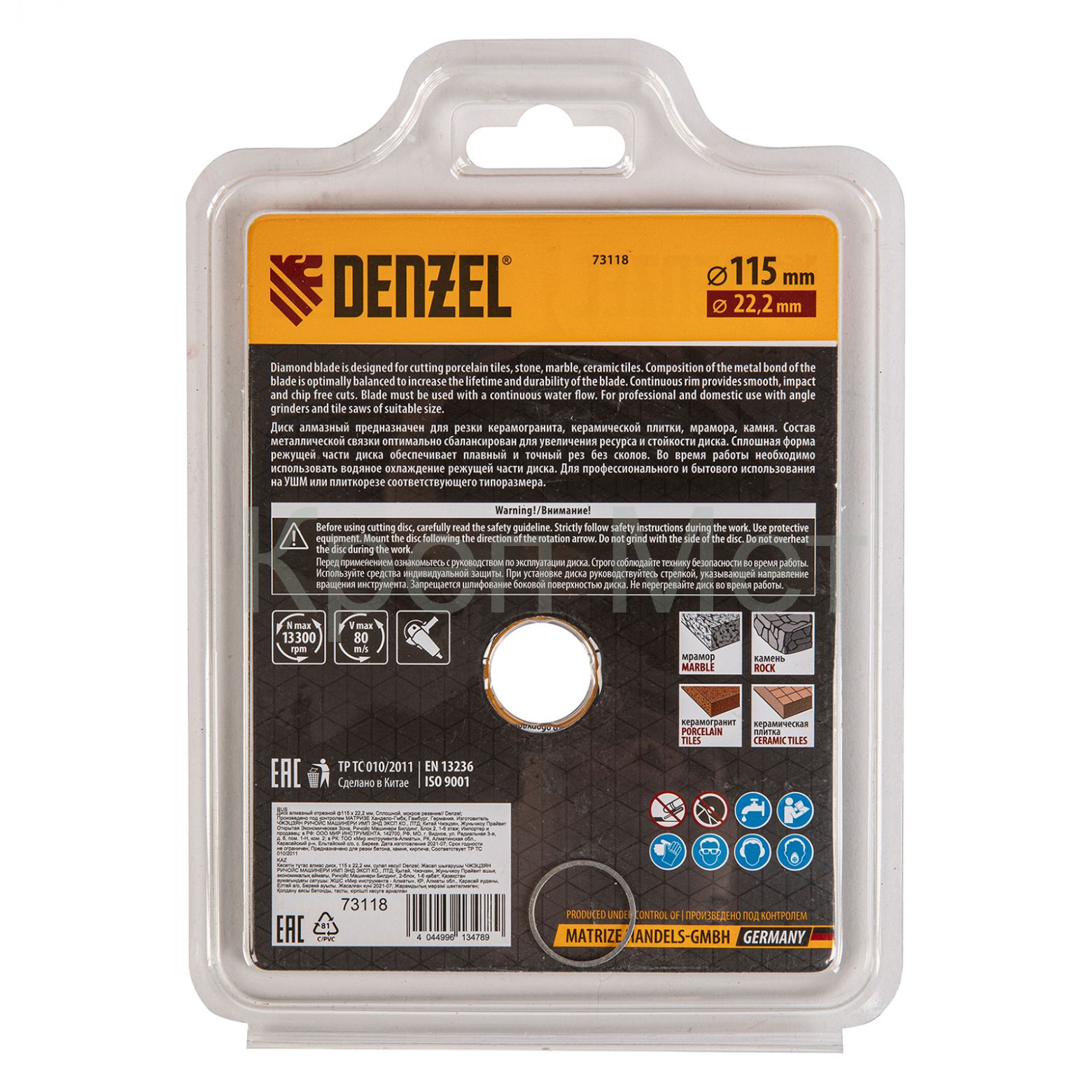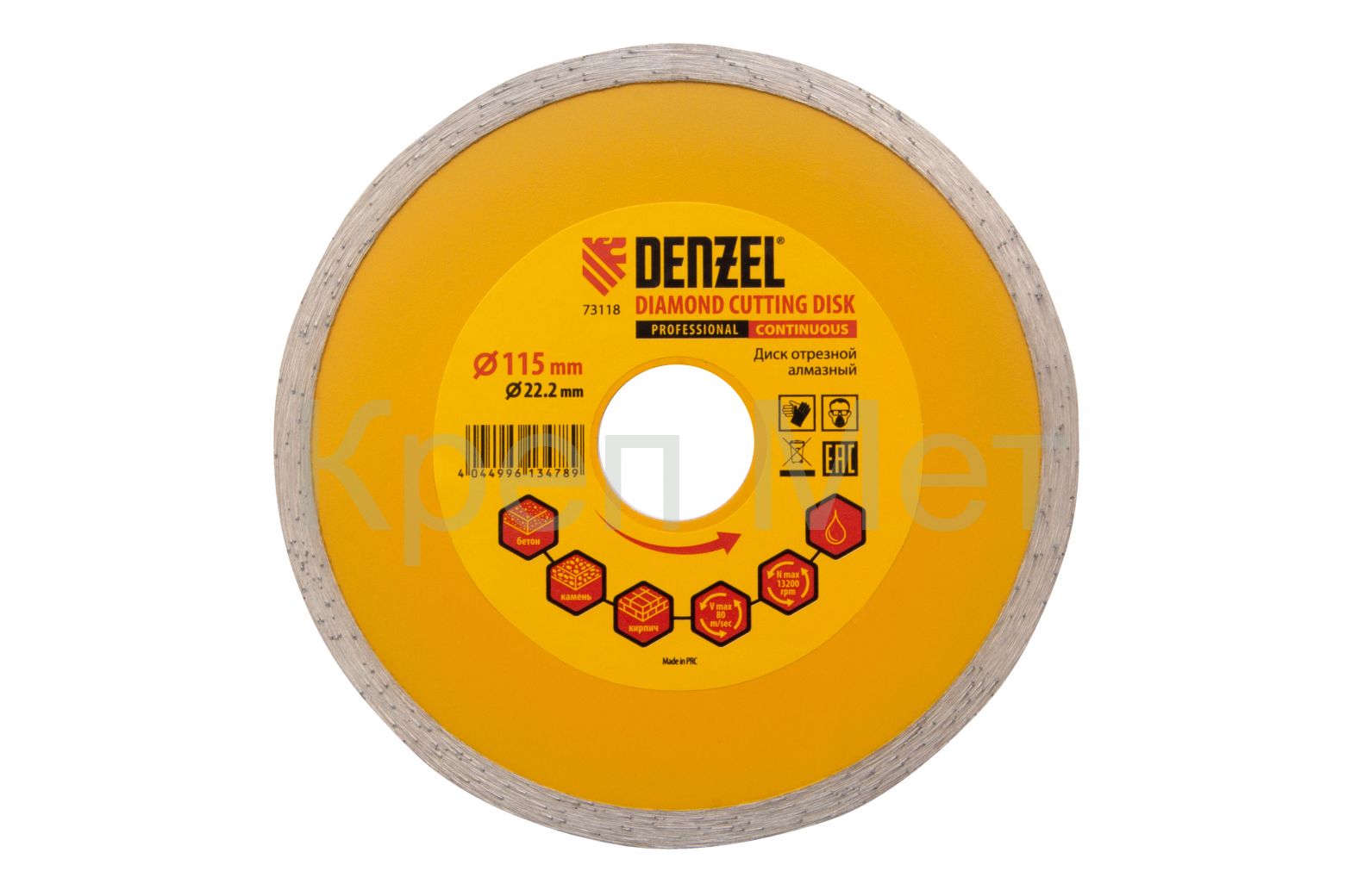 Диск алмазный, отрезной сплошной, 115 х 22.2 мм, мокрая резка Denzel