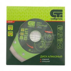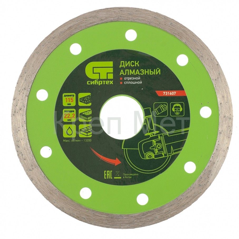 - Диск алмазный, отрезной сплошной, 115 х 22.2 мм, мокрая резка Сибртех