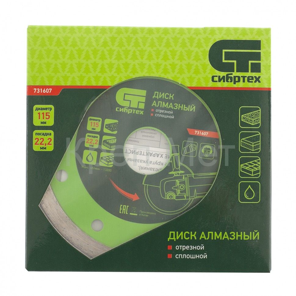 Алмазный отрезной сплошной диск Сибртех 731607 диаметром 115 х 22,2 мм применяется для мокрой резки керамогранитной, керамической плитки, а также мрамора и камня. Используется в качестве оснастки для болгарок и плиткорезов с посадочным диаметром 22,2 мм. Диск обладает хорошим рабочим ресурсом и рассчитан на долгую службу. Рез материалов необходимо проводить с использованием водяного охлаждения.