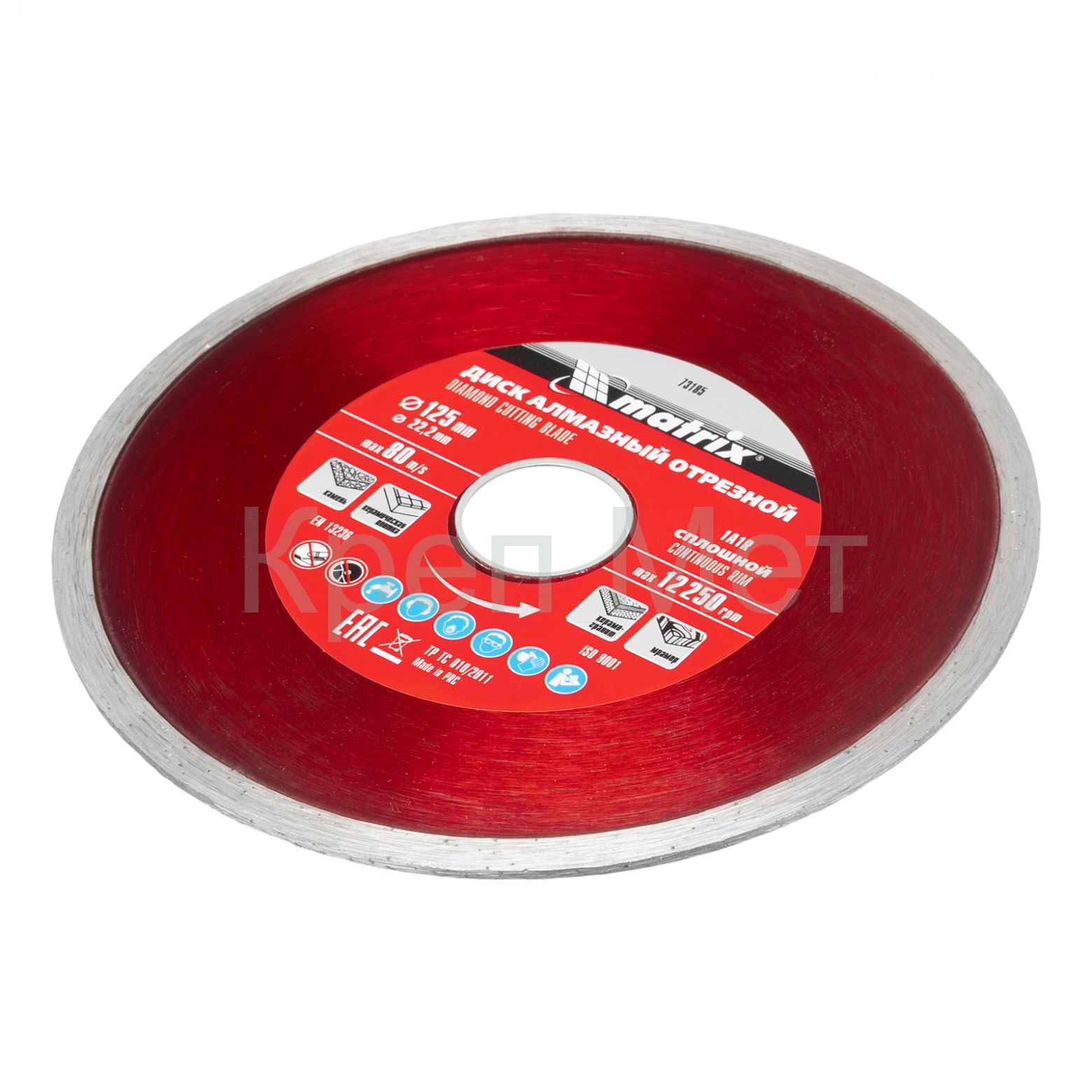 Диск алмазный, отрезной сплошной, 125 х 22.2 мм, мокрая резка Matrix Professional