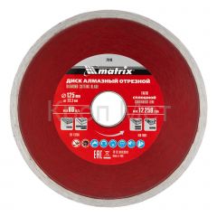 - Диск алмазный, отрезной сплошной, 125 х 22.2 мм, мокрая резка Matrix Professional