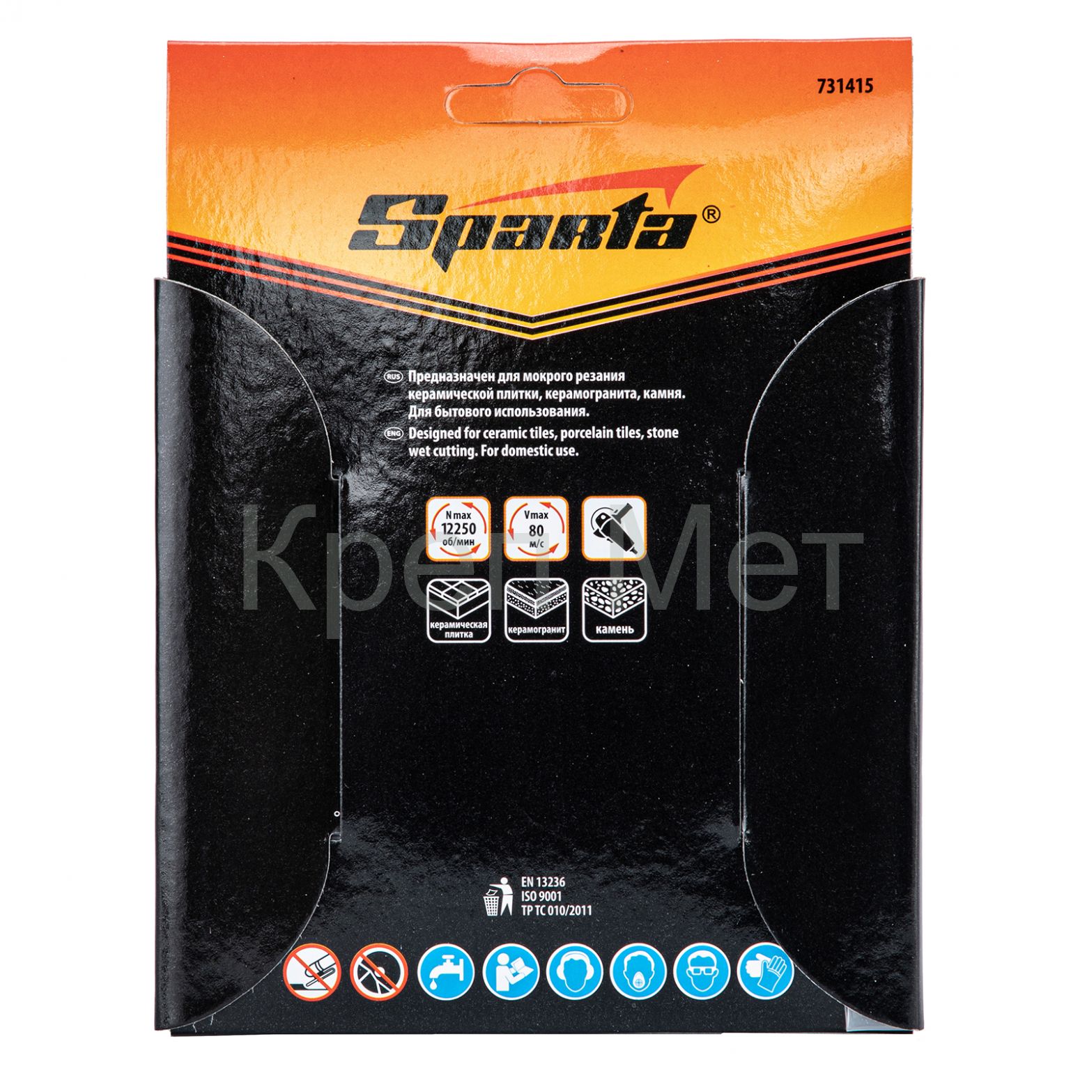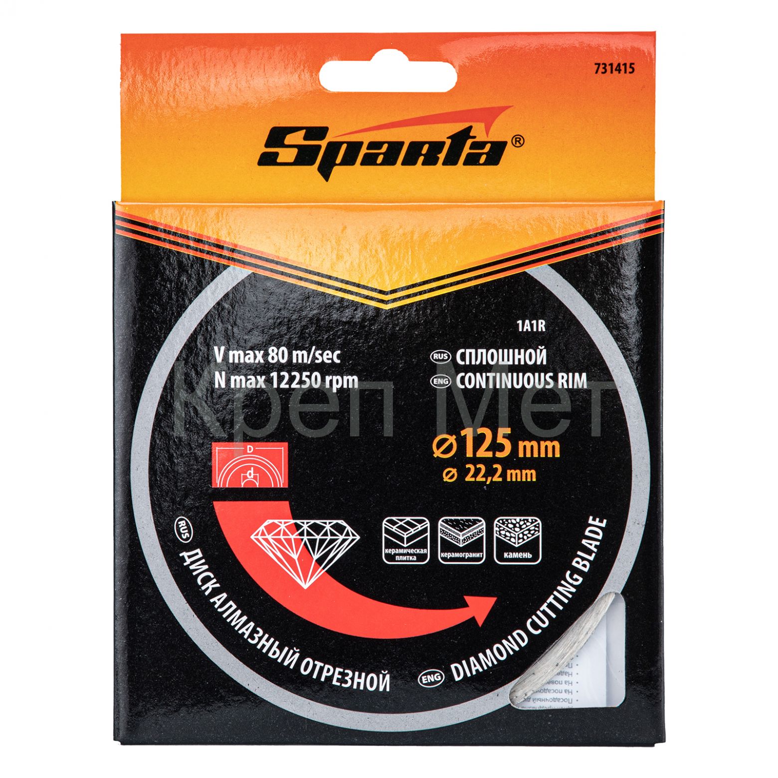 Отрезной алмазный диск Sparta 731415, сплошной, 125 х 22,2 мм — расходный инструмент для болгарок и плиткорезов, используемый для мокрого резания. Он позволяет выполнить аккуратный рез по керамике, керамограниту и мрамору в бытовых условиях. Рекомендуется применять с использованием водяного охлаждения.