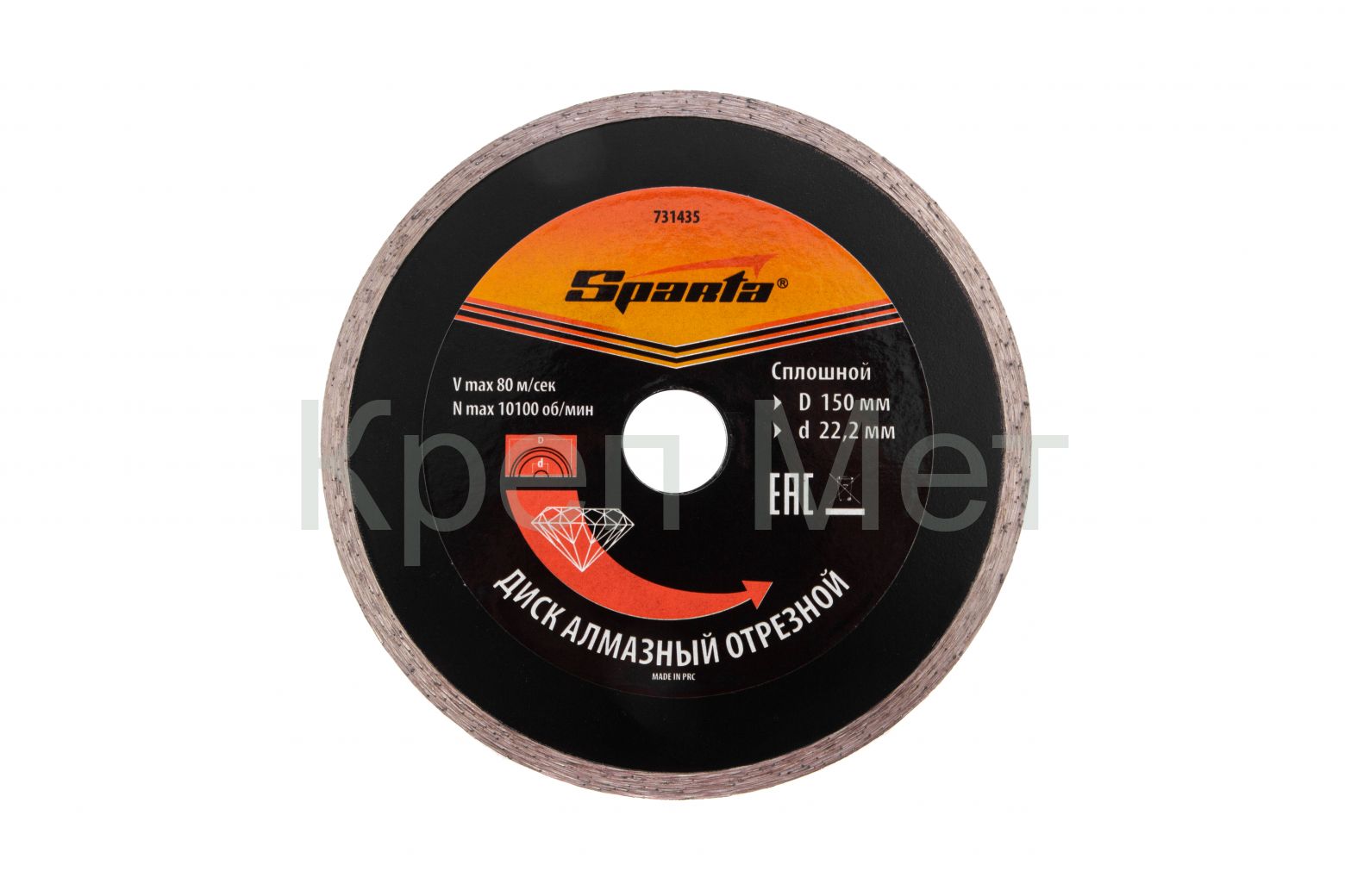 - Диск алмазный, отрезной сплошной, 150 х 22.2 мм, мокрая резка Sparta