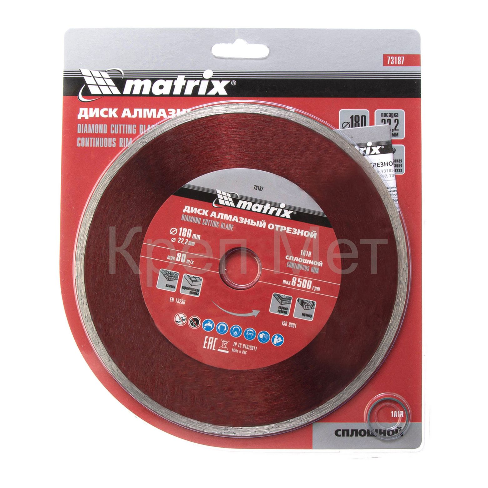 Диск алмазный, отрезной сплошной, 180 х 22.2 мм, мокрая резка Matrix Professional