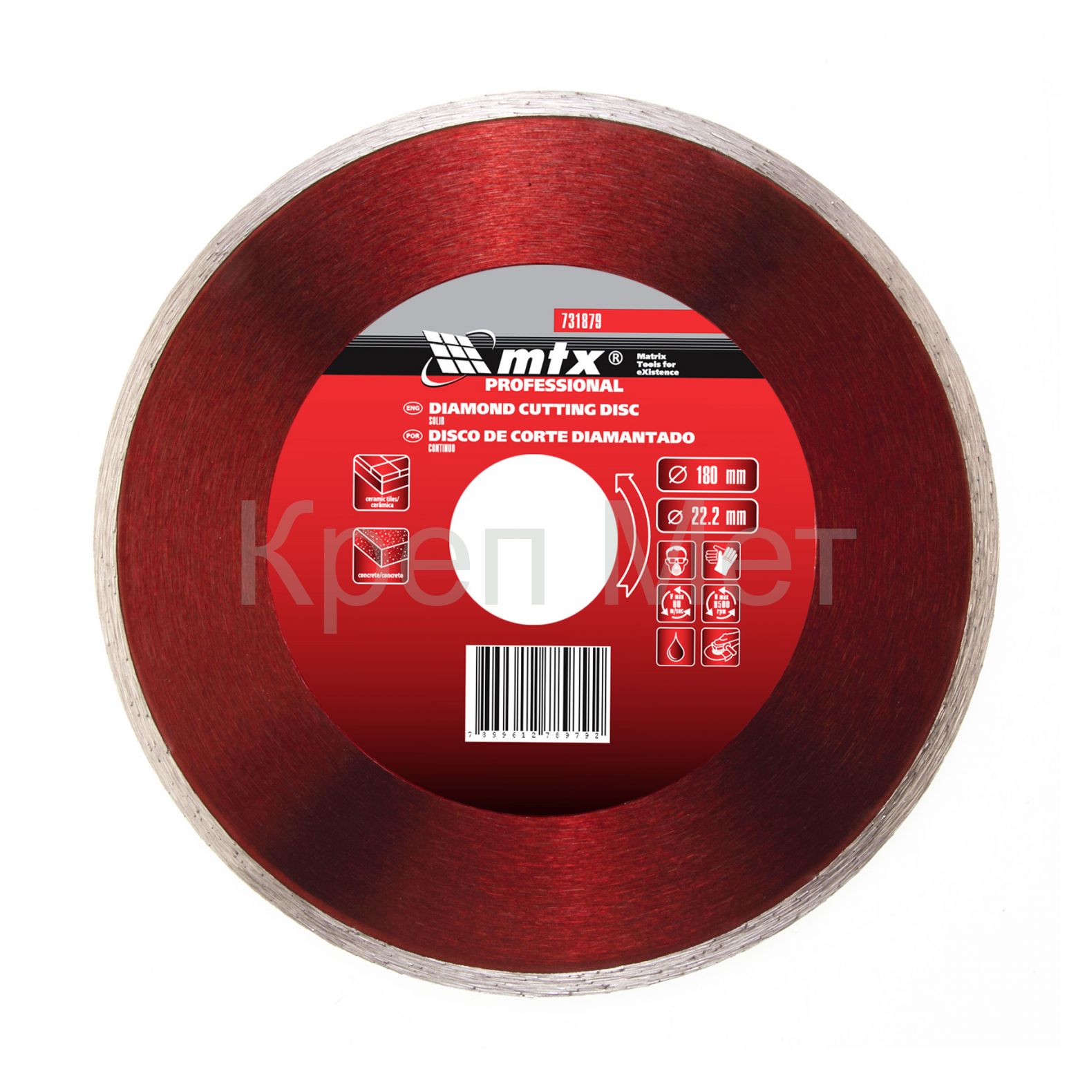 - Диск алмазный, отрезной сплошной, 180 х 22.2 мм, мокрая резка Matrix Professional