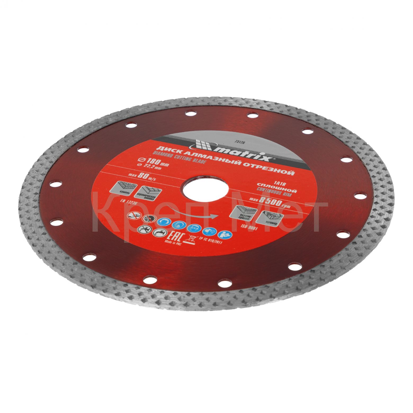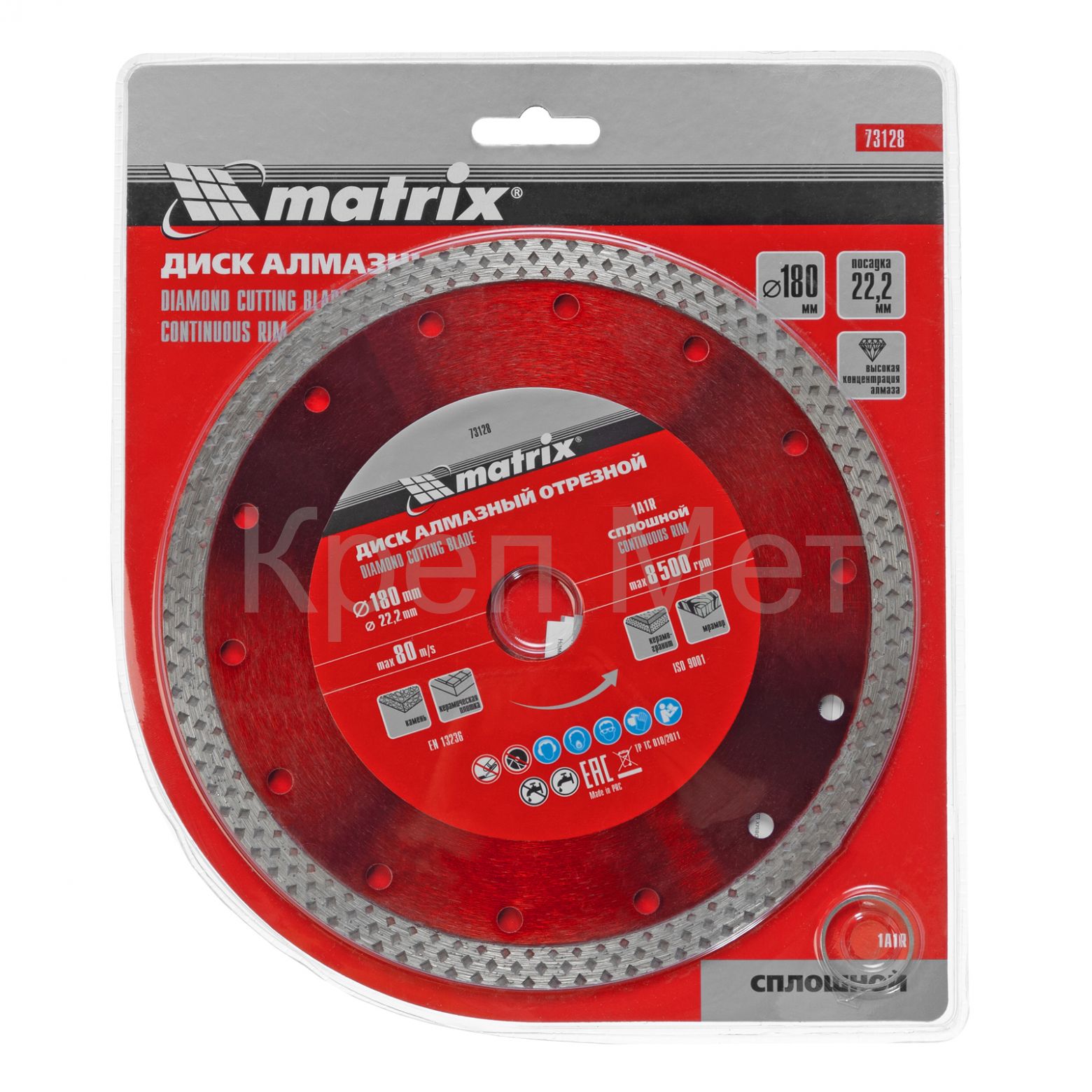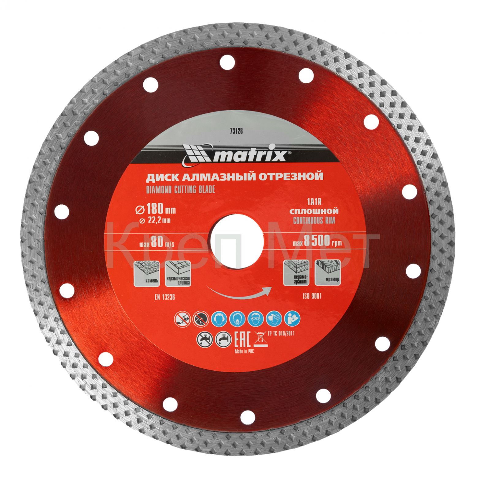 - Диск алмазный, отрезной сплошной, 180 х 22.2 мм, сухая резка Matrix Professional