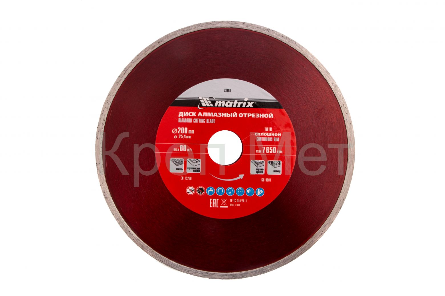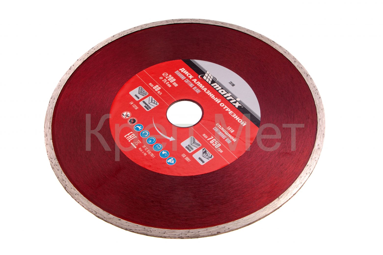 Диск алмазный, отрезной сплошной, 200 х 25.4 мм, мокрая резка Matrix Professional