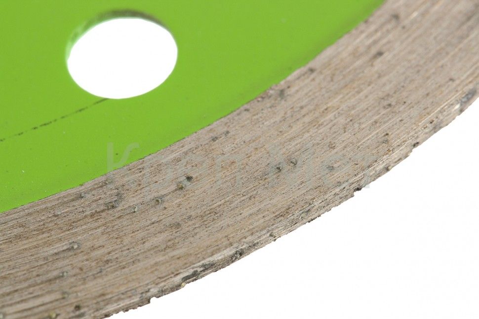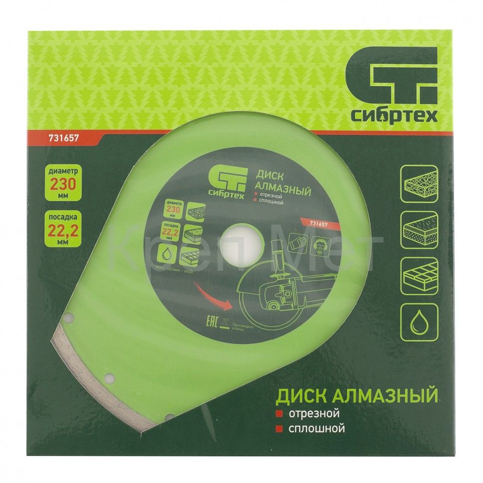 Алмазный отрезной сплошной диск Сибртех 731657 диаметром 230 х 22,2 мм применяется для мокрой резки керамогранитной, керамической плитки, а также мрамора и камня. Используется в качестве оснастки для болгарок и плиткорезов с посадочным диаметром 22,2 мм. Диск обладает хорошим рабочим ресурсом и рассчитан на долгую службу. Рез материалов необходимо проводить с использованием водяного охлаждения.