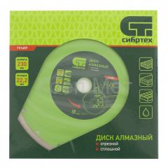 - Диск алмазный, отрезной сплошной, 230 х 22.2 мм, мокрая резка Сибртех