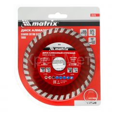 Диск алмазный, отрезной Turbo, 115 х 22.2 мм, сухая резка Matrix Professional