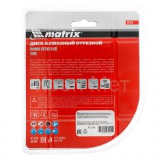 - Диск алмазный, отрезной Turbo, 115 х 22.2 мм, сухая резка Matrix Professional
