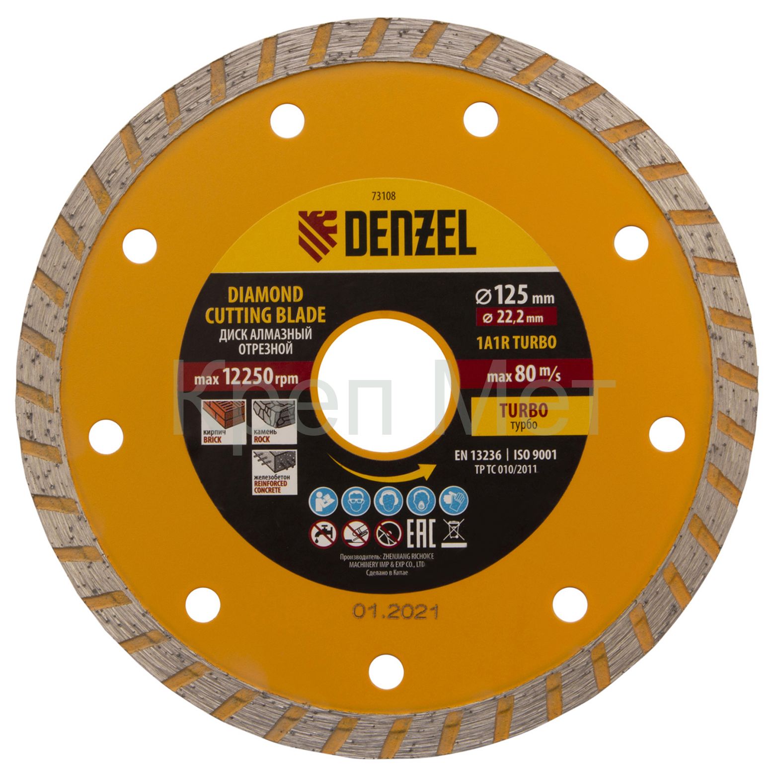 Диск алмазный, отрезной Turbo, 125 х 22.2 мм, сухая резка Denzel