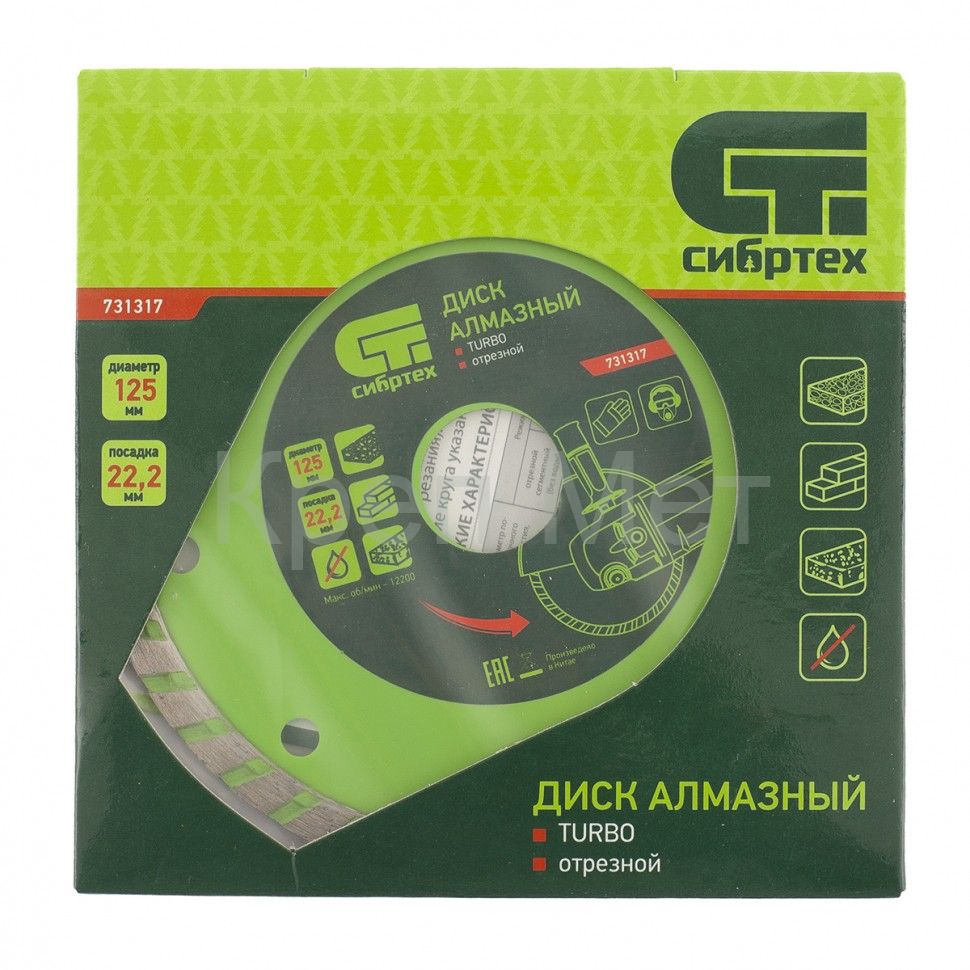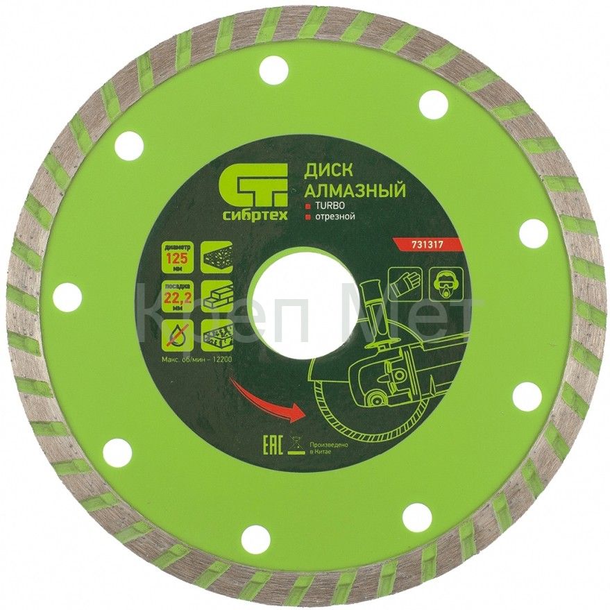 Диск алмазный, отрезной Turbo, 125 х 22.2 мм, сухая резка Сибртех