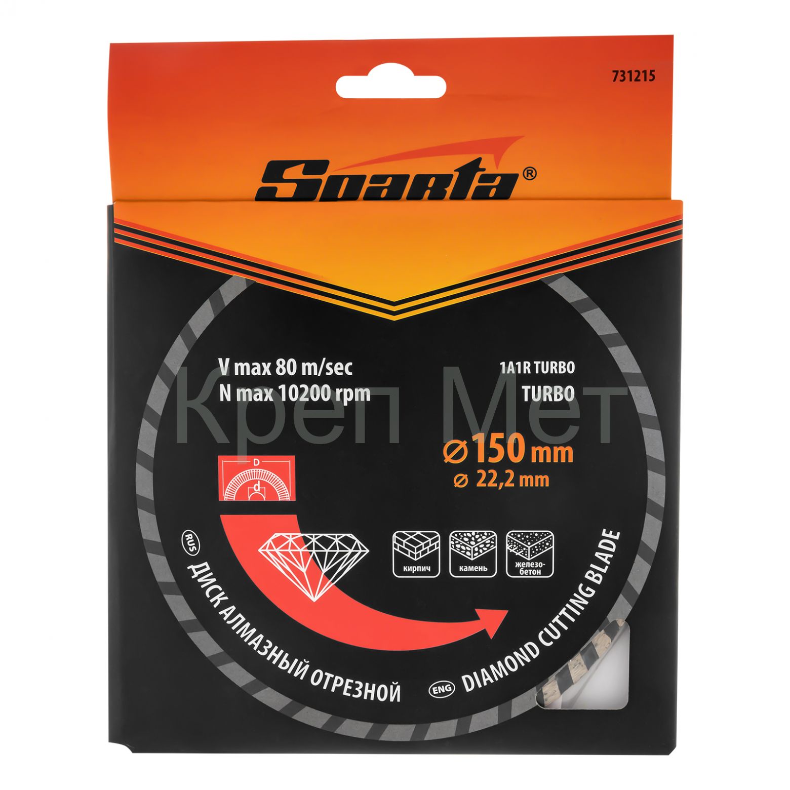 - Диск алмазный, отрезной Turbo, 150 х 22.2 мм, сухая резка Sparta