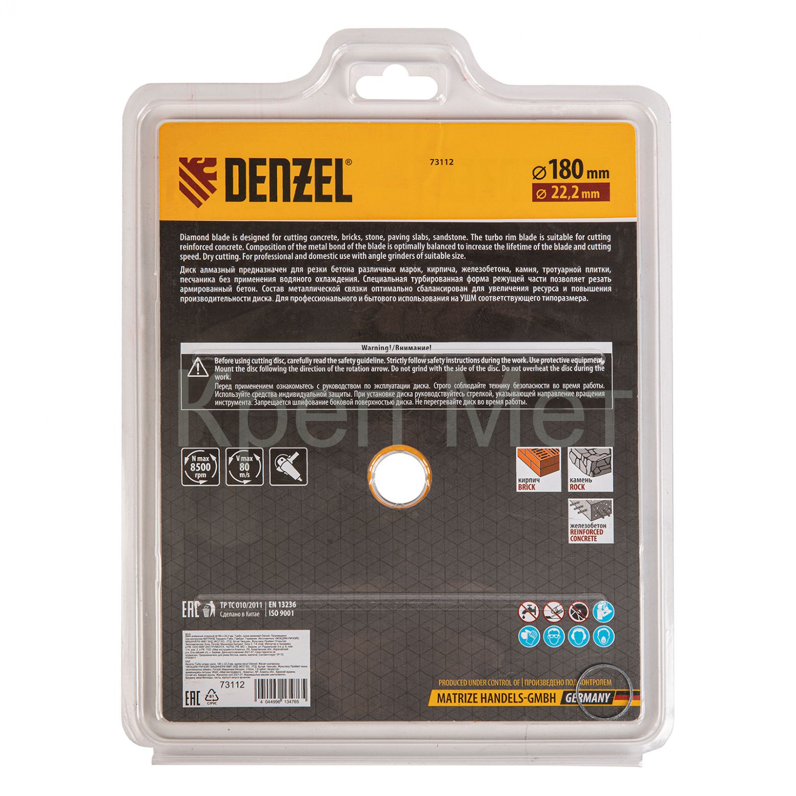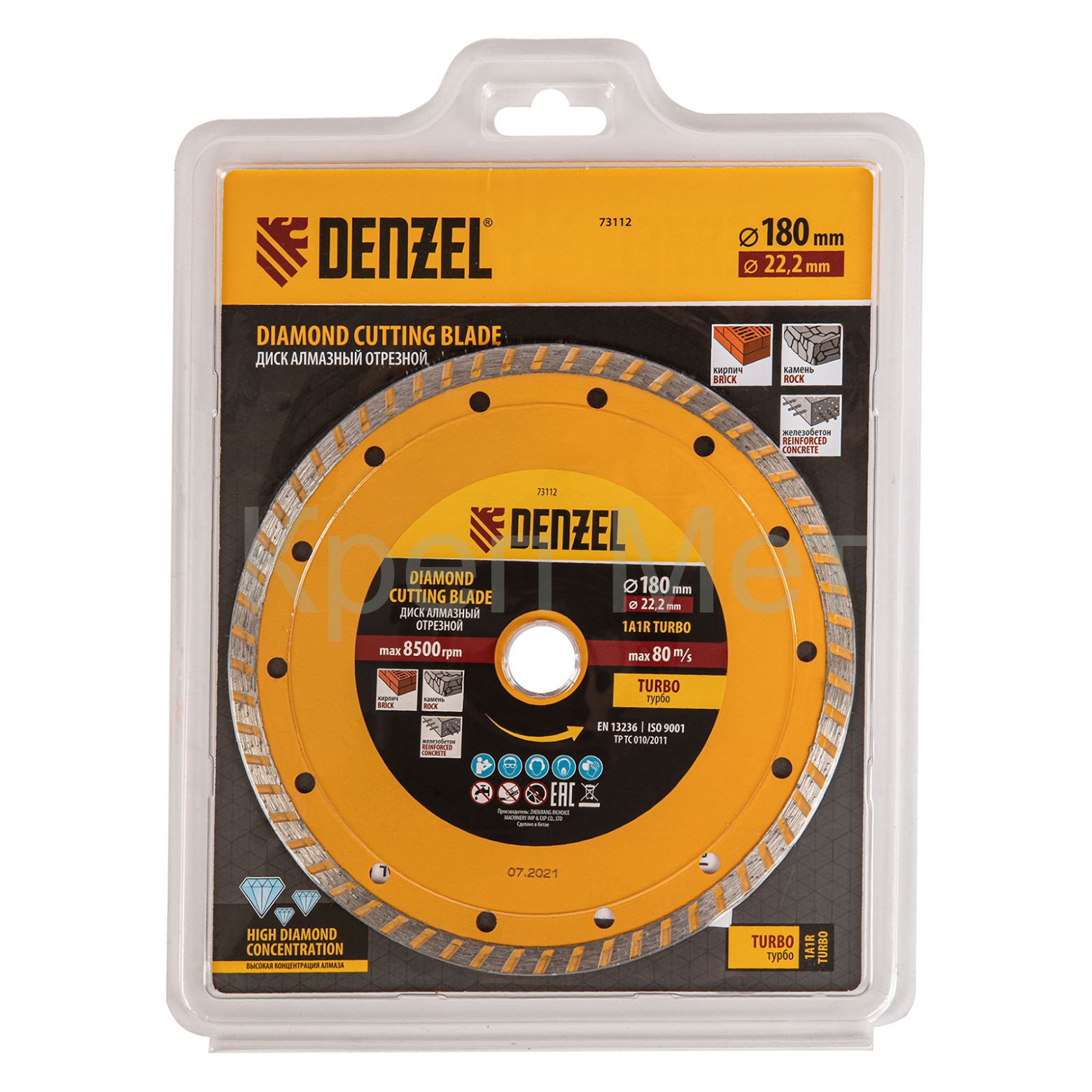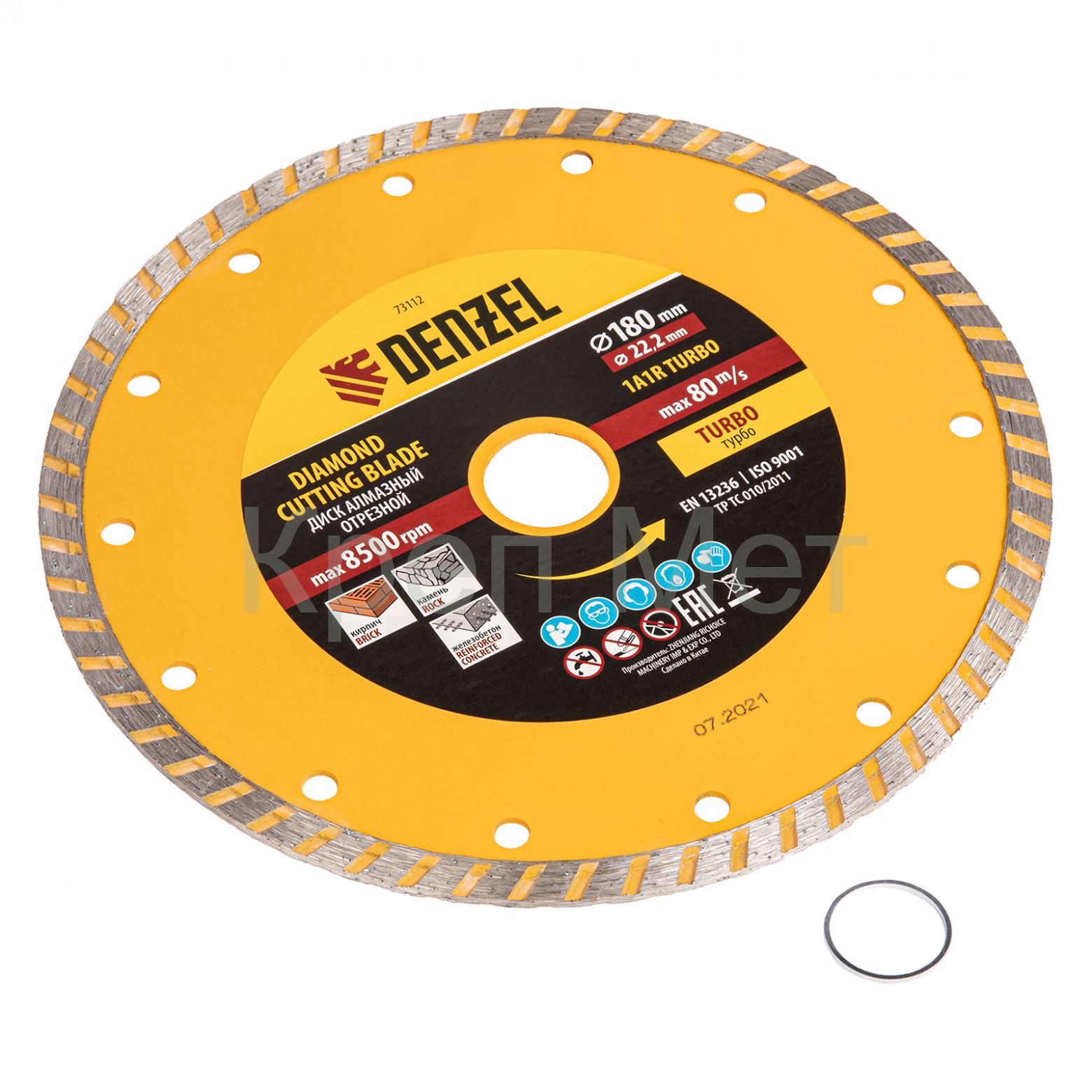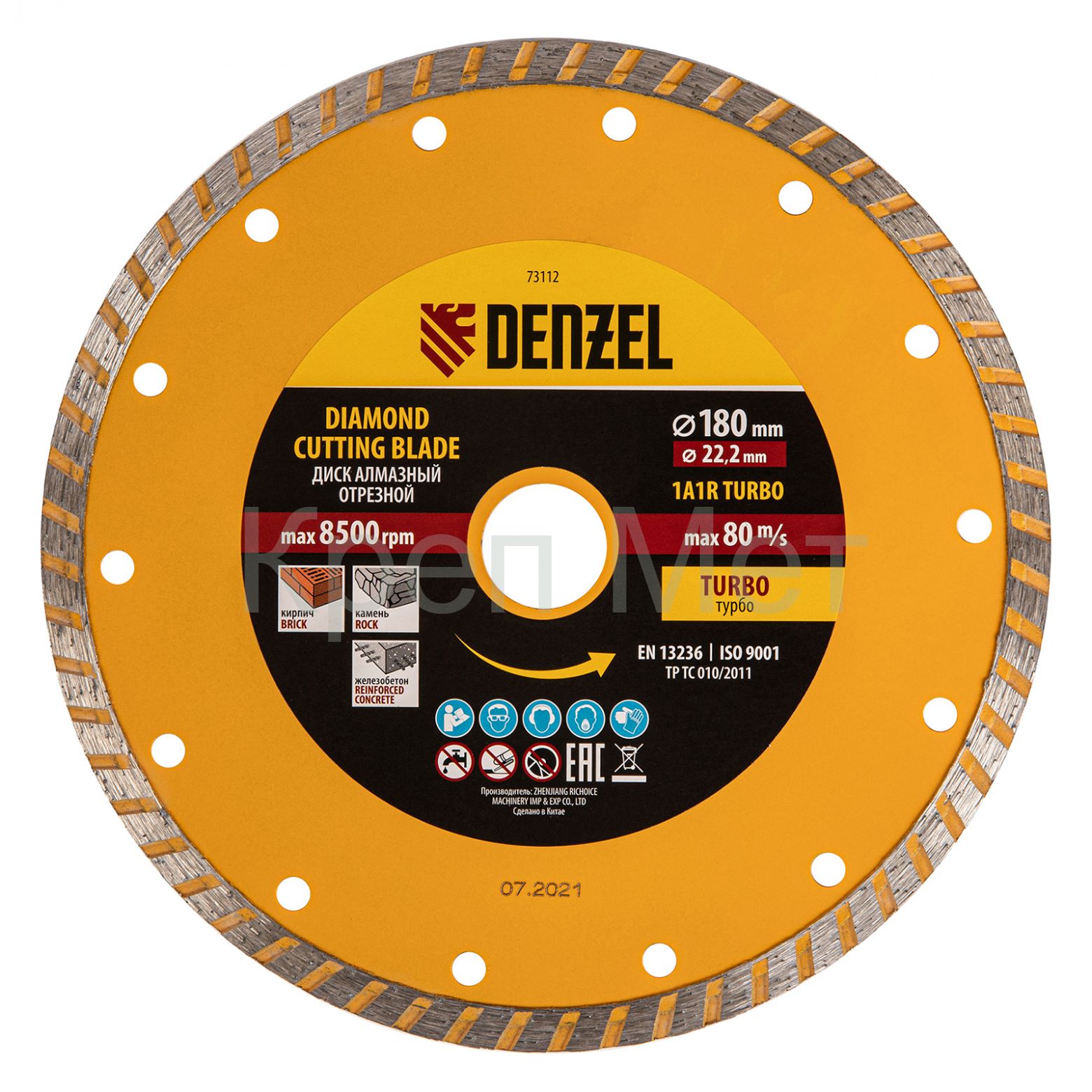 Отрезной алмазный диск Denzel Turbo 73112 диаметром 180 х 22,2 мм используется для сухой резки камня, кирпича, свежего и затвердевшего бетона, железобетона. Благодаря специальной форме испытывает уменьшенную нагрузку при резании материалов. Устанавливается на УШМ и применяется для проведения бытовых и профессиональных отрезных работ.