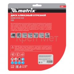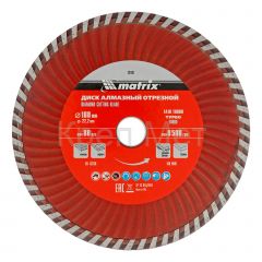 - Диск алмазный, отрезной Turbo, 180 х 22.2 мм, сухая резка Matrix Professional