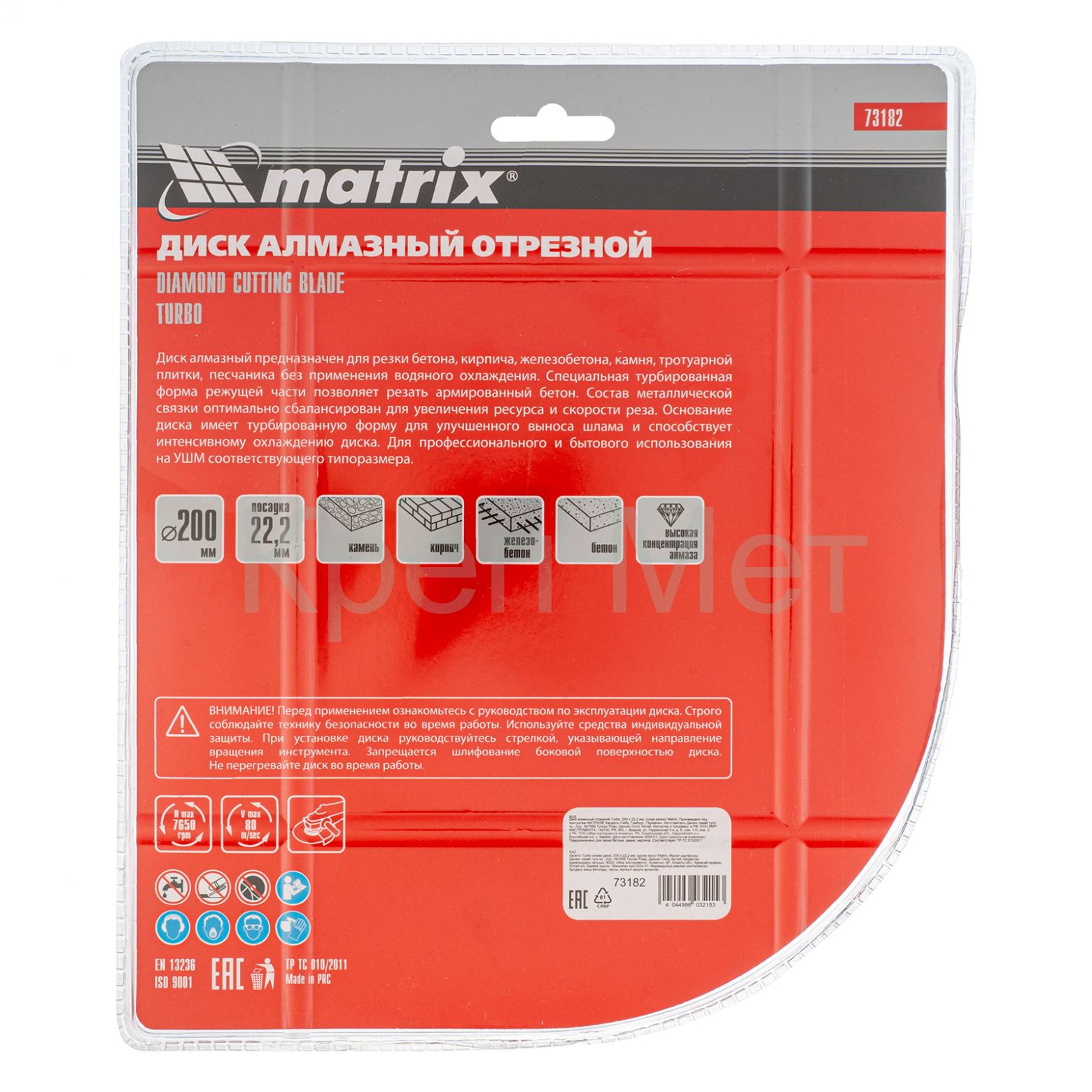 Отрезной алмазный диск Matrix Turbo 73182 диаметром 200 х 22,2 мм, предназначен для сухой резки. Используется в качестве сменной оснасткой для углошлифовальных машин (УШМ) во время ремонта и мелкого строительства, а также в быту. Позволяет работать по бетону, в том числе свежему и среднеармированному, камню и кирпичу.