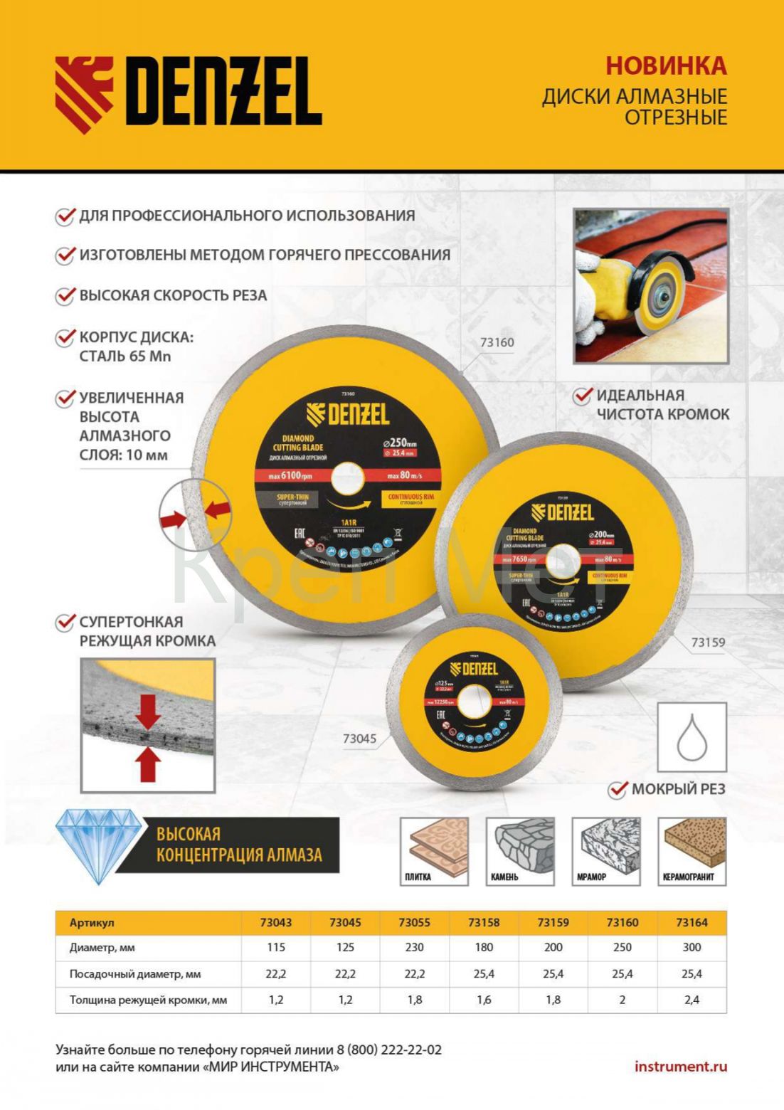 - Высокий ресурс — оптимально подобранная связка надежно удерживает алмазы и обеспечивает своевременное обновление режущего слоя.