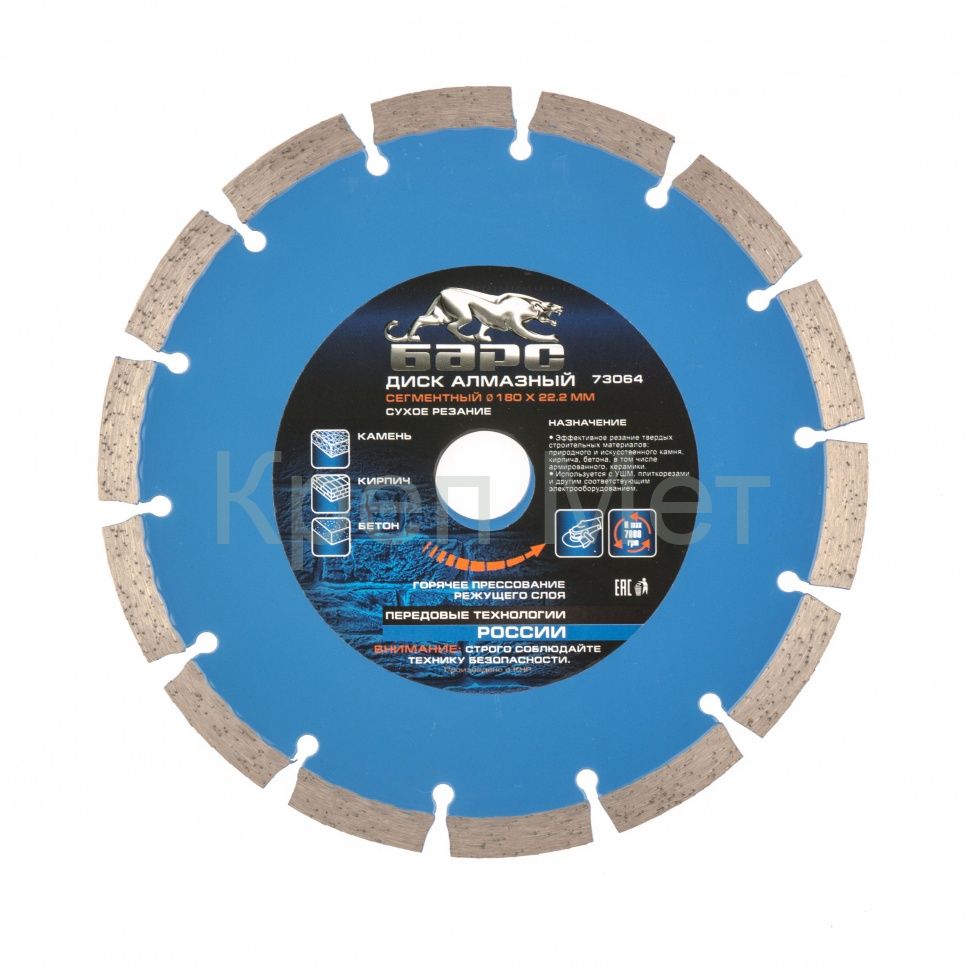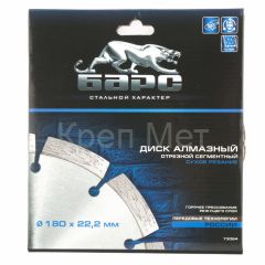 - Диск алмазный, сегментный 180 х 22.2 мм, сухая резка Барс