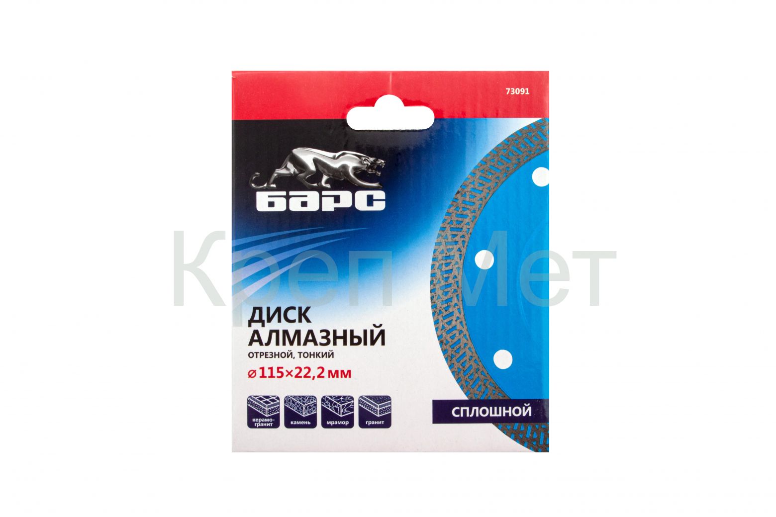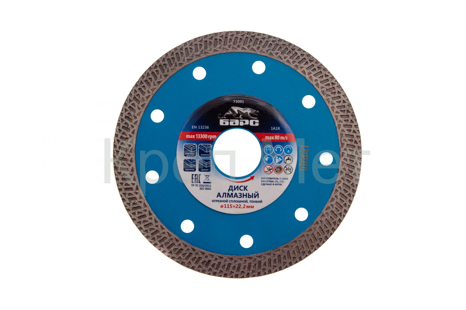 Диск алмазный, сплошной 115 х 22.2 мм, тонкий, сухая/мокрая резка Барс