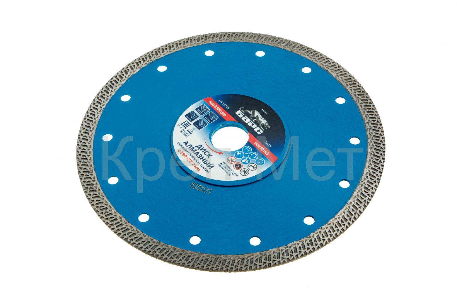 Диск алмазный, сплошной 180 х 22.2 мм, тонкий, сухая/мокрая резка Барс