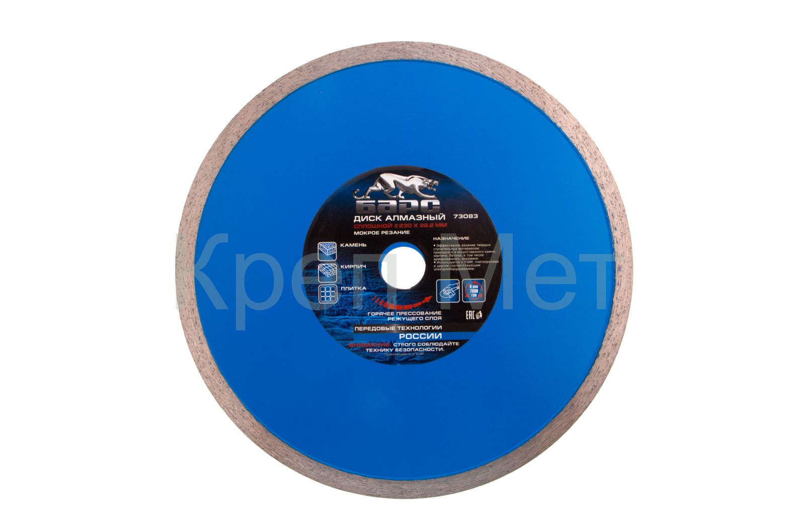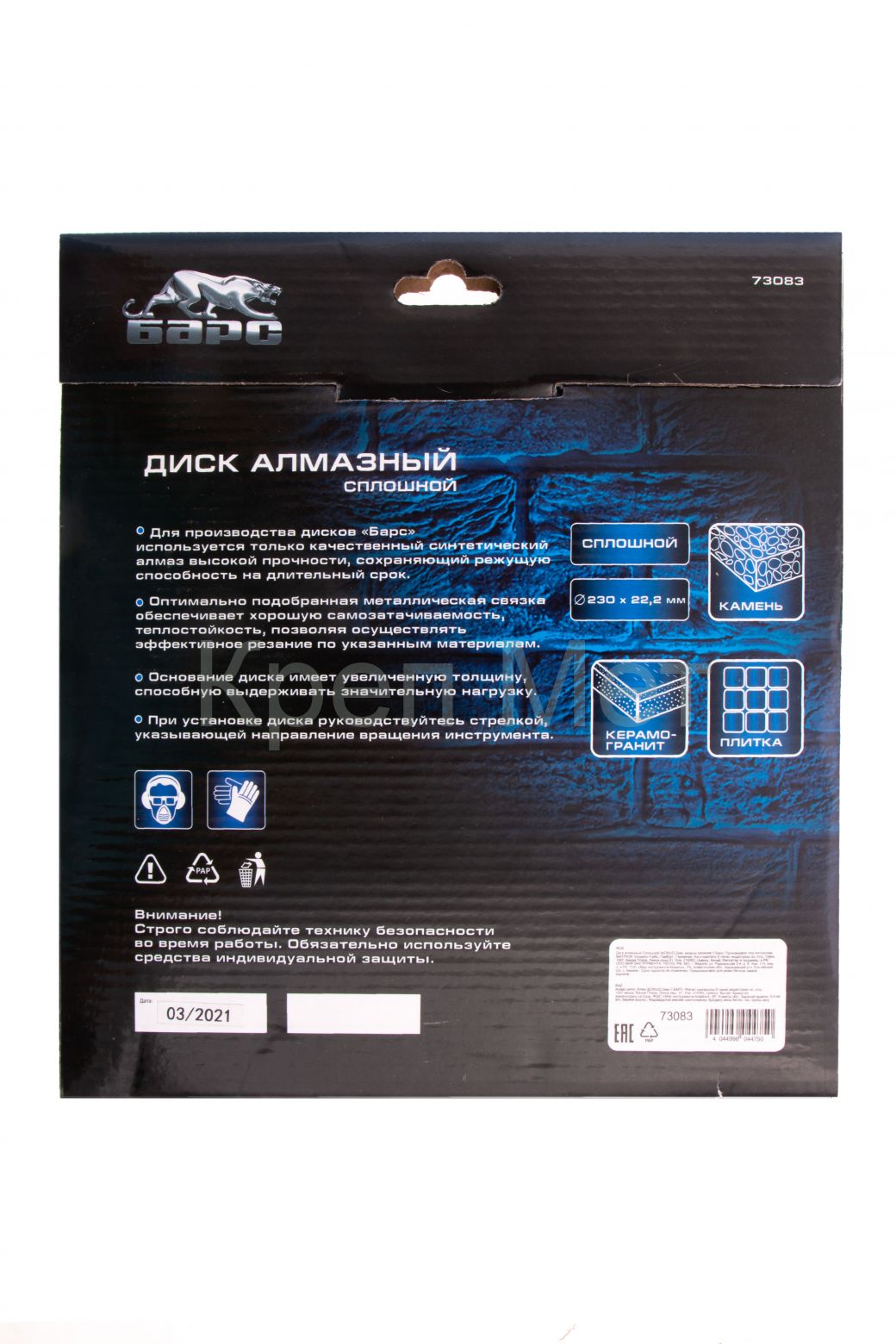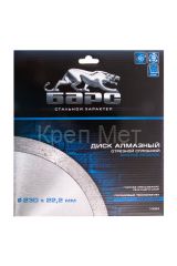 - Диск алмазный, сплошной 230 х 22.2 мм, мокрая резка Барс