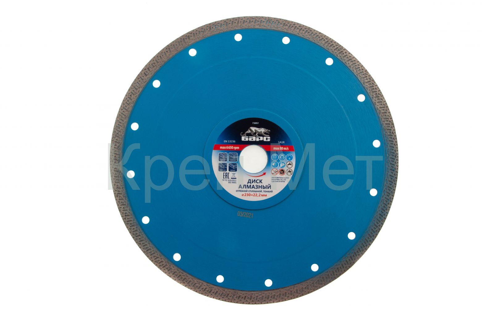 Диск алмазный, сплошной 230 х 22.2 мм, тонкий, сухая/мокрая резка Барс