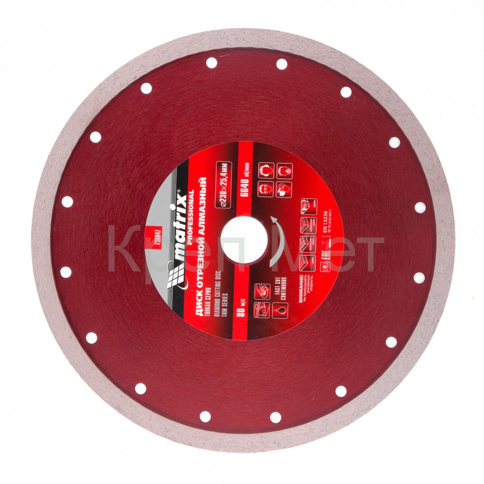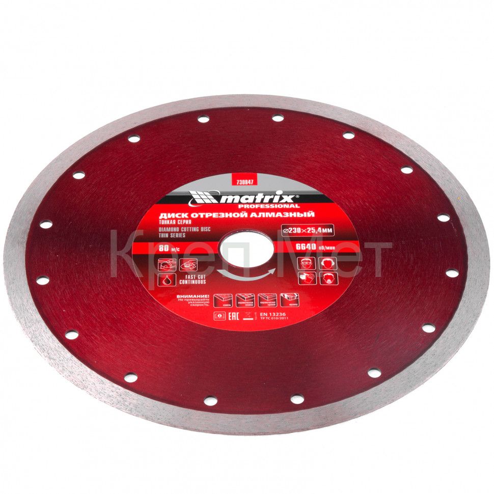 - Диск алмазный сплошной, тонкий, 230 х 25.4 мм, мокрое резание Matrix
