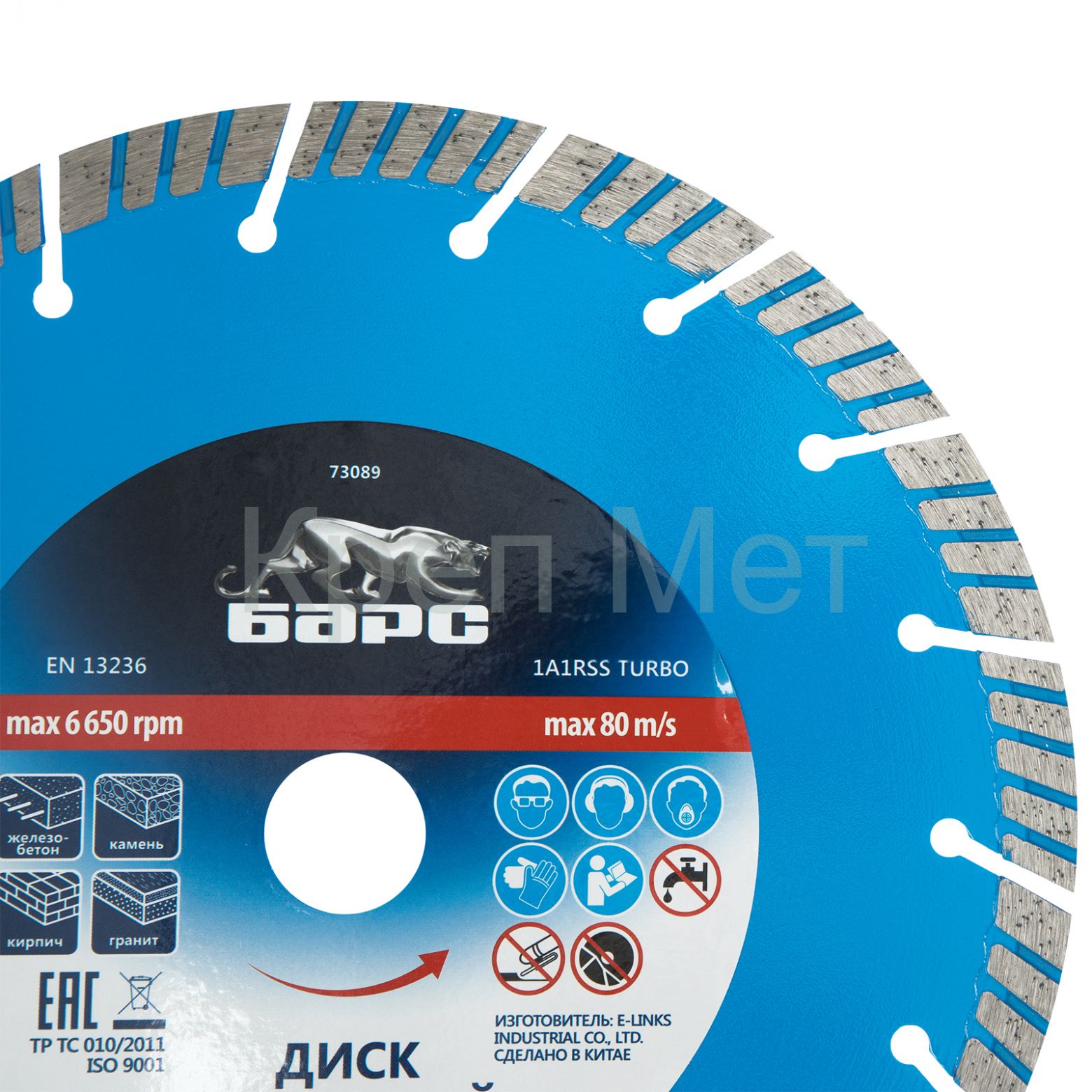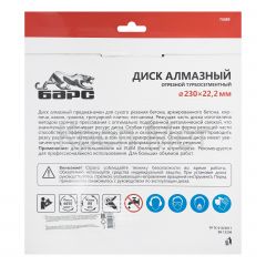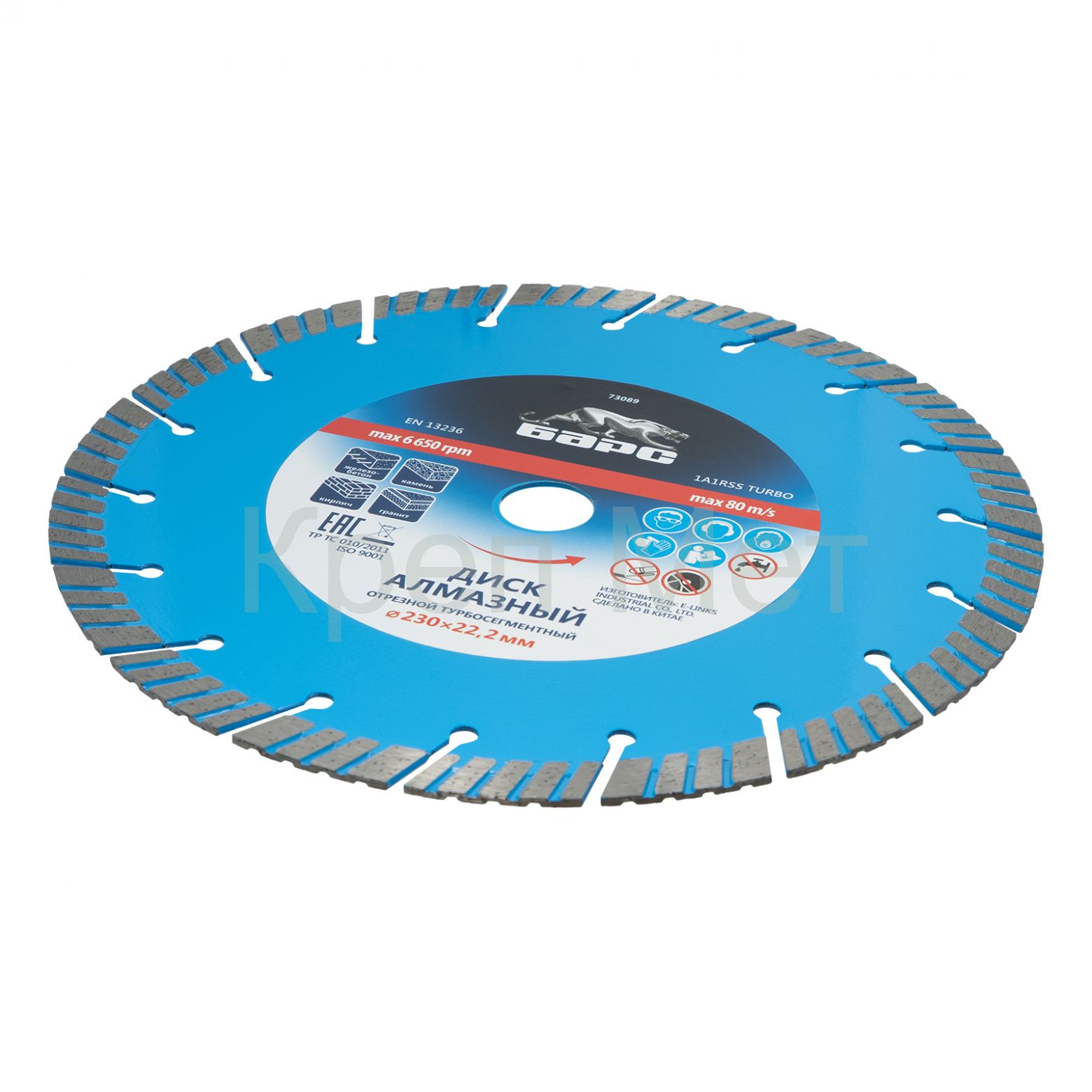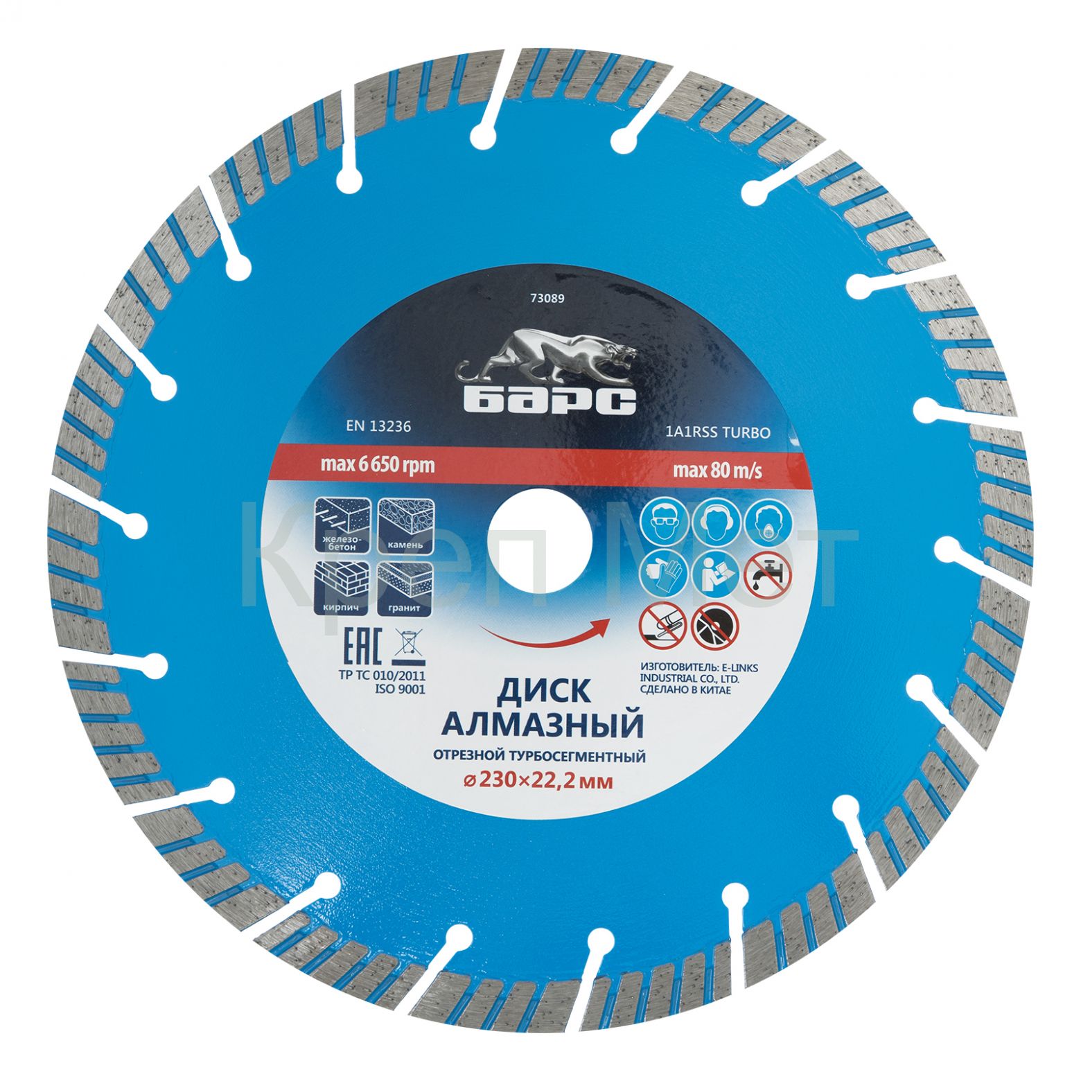 - Диск алмазный, Турбо-сегментный 230 х 22.2 мм, сухая резка Барс