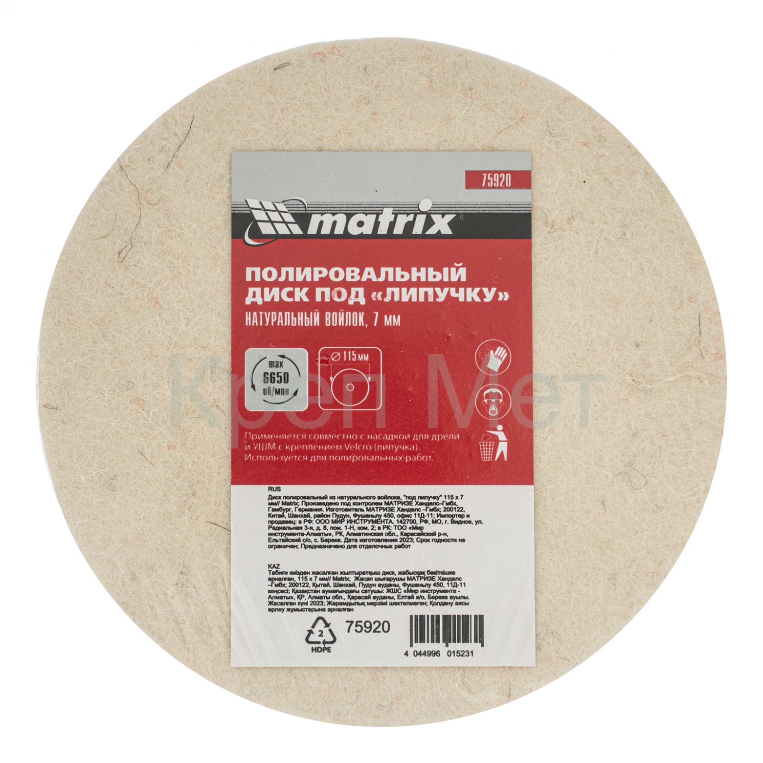 - Диск полировальный из натурального войлока, "под липучку" 115 х 7 мм Matrix