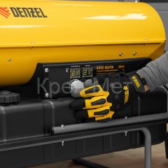 Дизельная тепловая пушка Denzel DHG-50 96486 мощностью 50 кВт и производительностью 1100 куб. м/ч предназначена для прямого нагрева воздуха в цехах, ангарах, хранилищах и других нежилых помещениях с хорошей вентиляцией. Максимальная площадь обогрева составляет 500 кв. м. Пушка служит эффективным источником тепла в полярных экспедициях. Пригодится также на строительной площадке для прогрева бетона, просушки стен и разморозки траншей. Для заправки может использоваться любое дизельное топливо: летнее, зимнее и арктическое.