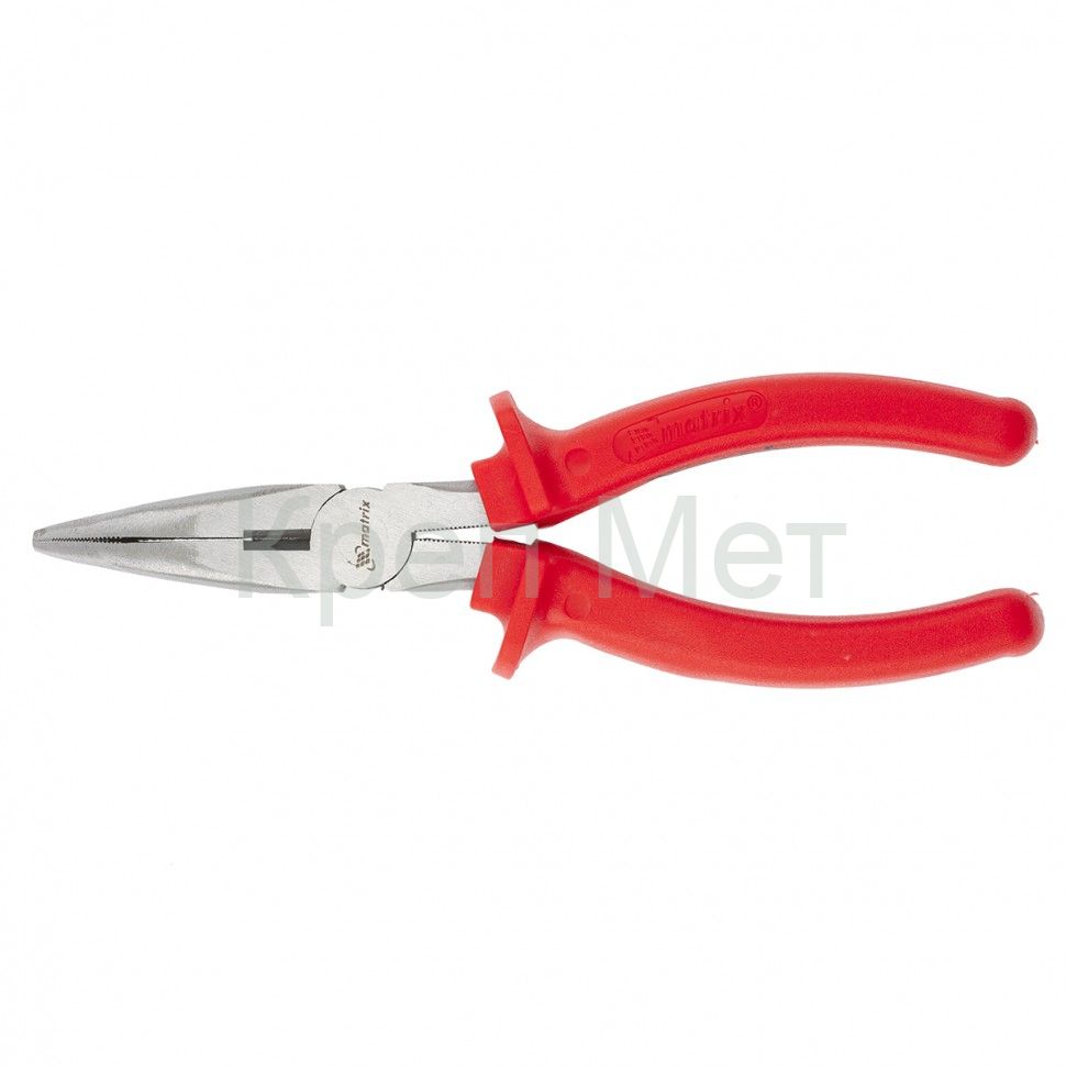- Длинногубцы изогнутые Econom, 160 мм, шлифованные, пластмассовые рукоятки Matrix