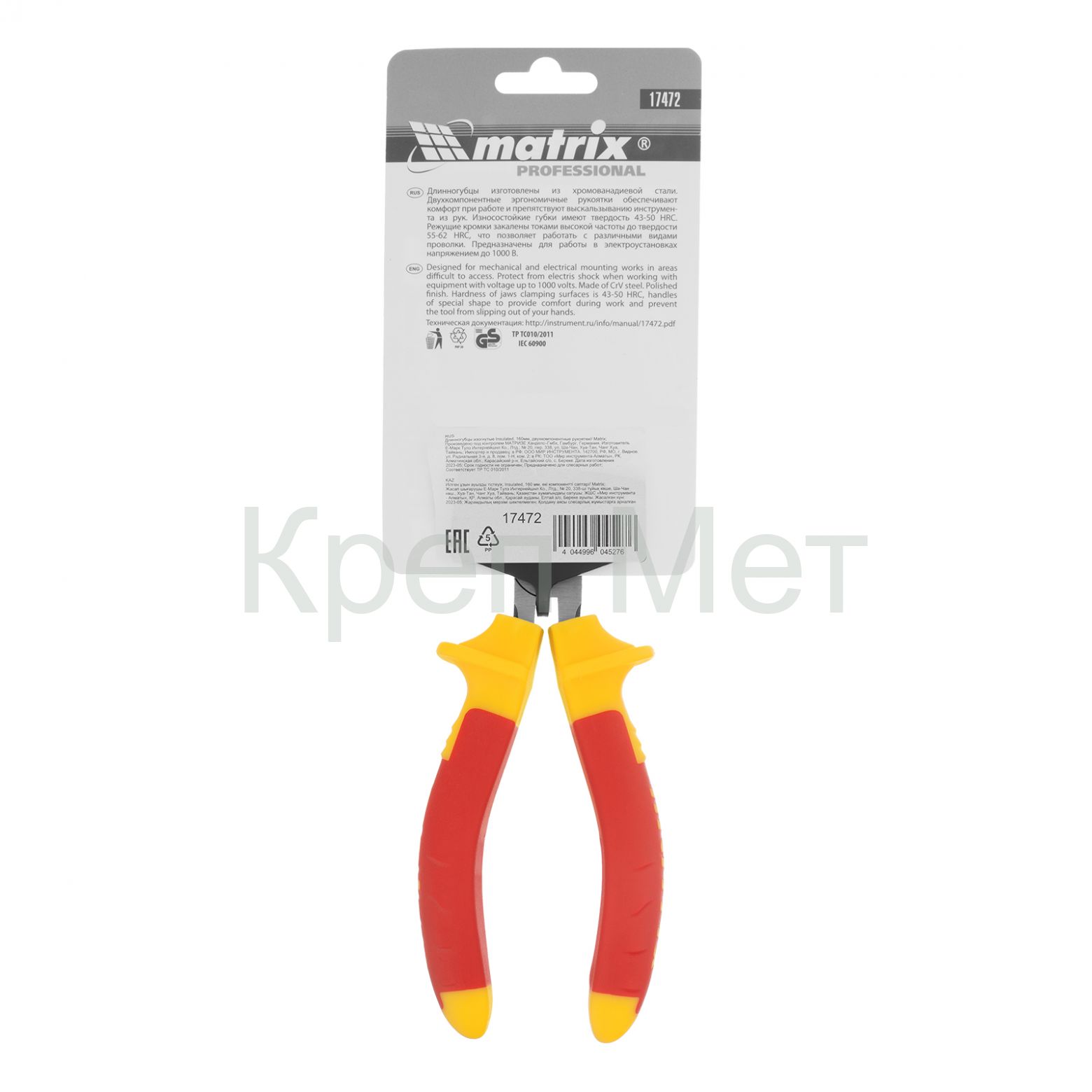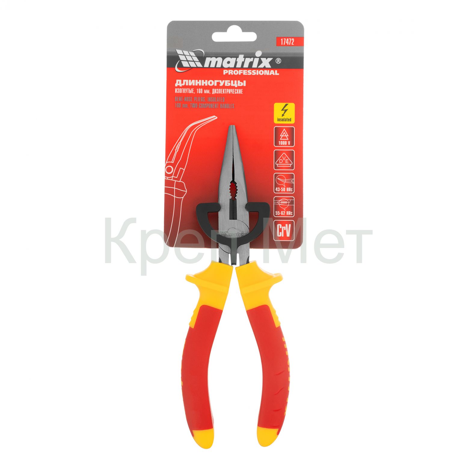 Изогнутые длинногубцы Matrix Insulated 17472 длиной 160 мм, с двухкомпонентными рукоятками, облегчают работу в труднодоступных местах. Они пригодятся не только ремонтникам и слесарям, но и электромонтажникам, т.к. рукоятки обладают диэлектрическими свойствами и рассчитаны на напряжение до 1000 В. Важно — техника безопасности запрещает выполнять работы под напряжением!
