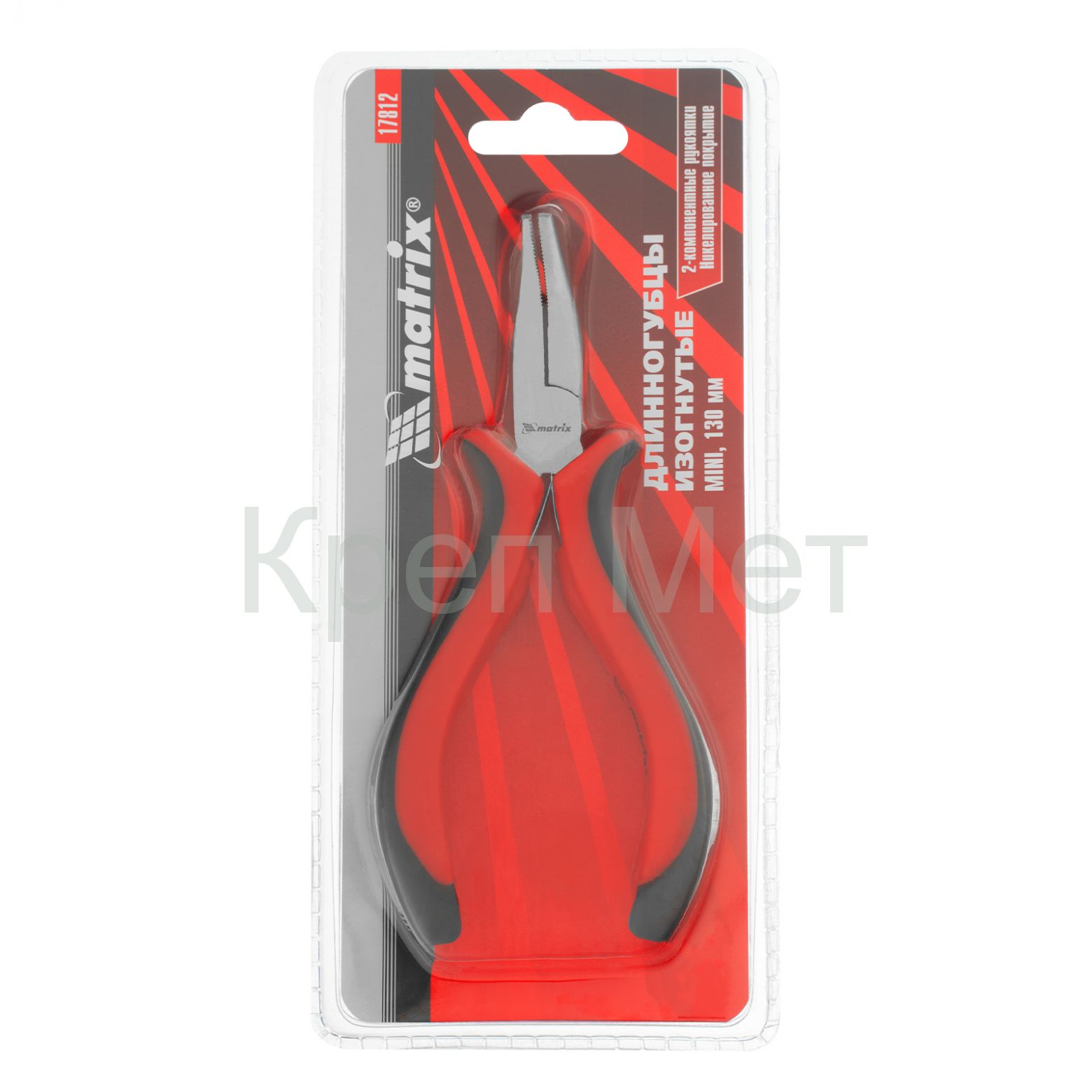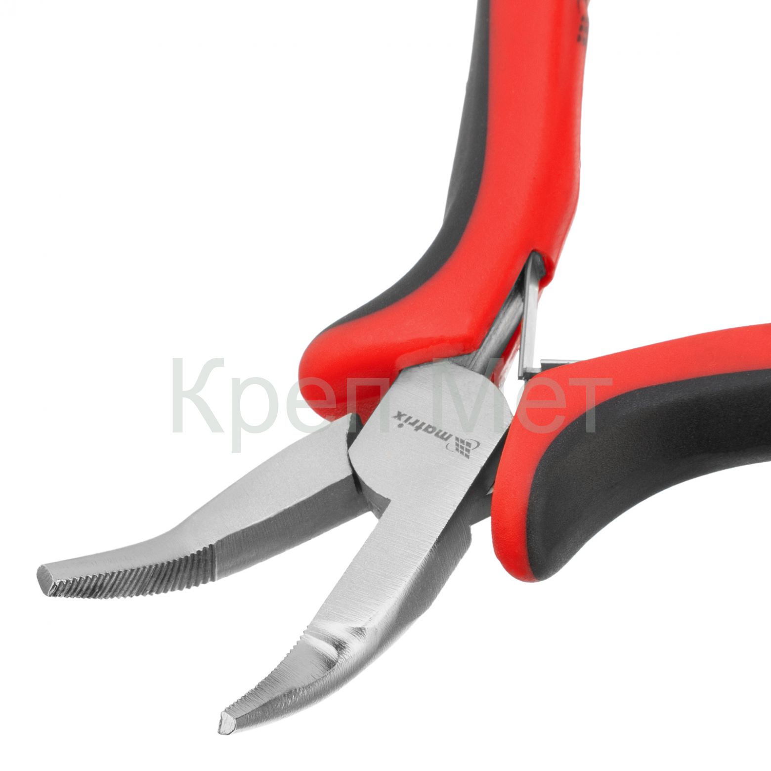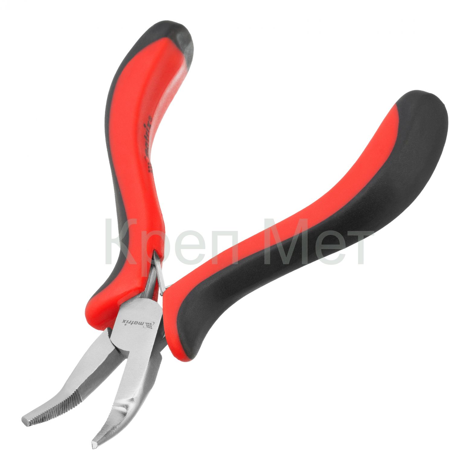 Длинногубцы изогнутые Mini, 130 мм, никелированные, авторазжим, двухкомпонентные рукоятки Matrix