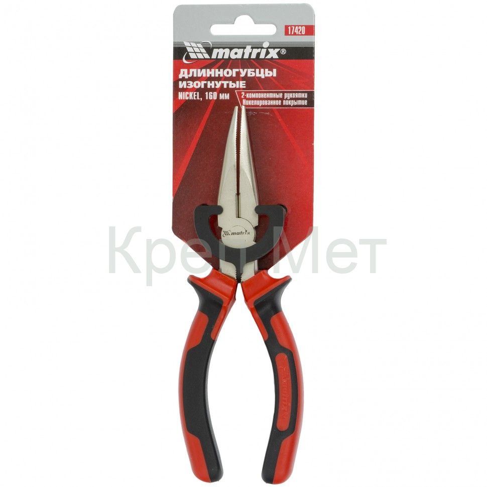 Длинногубцы изогнутые Nickel, 160 мм, никелированные, двухкомпонентные рукоятки Matrix