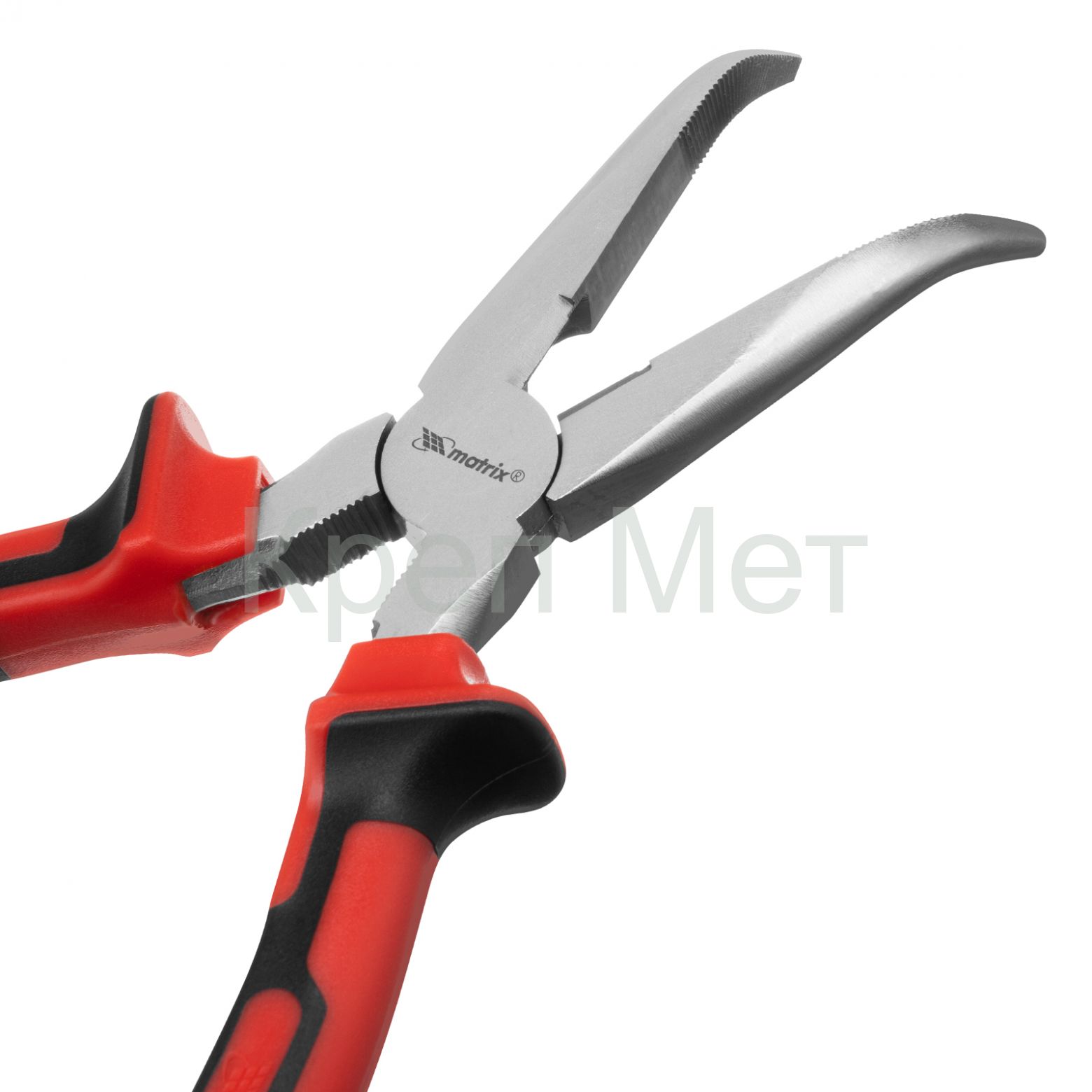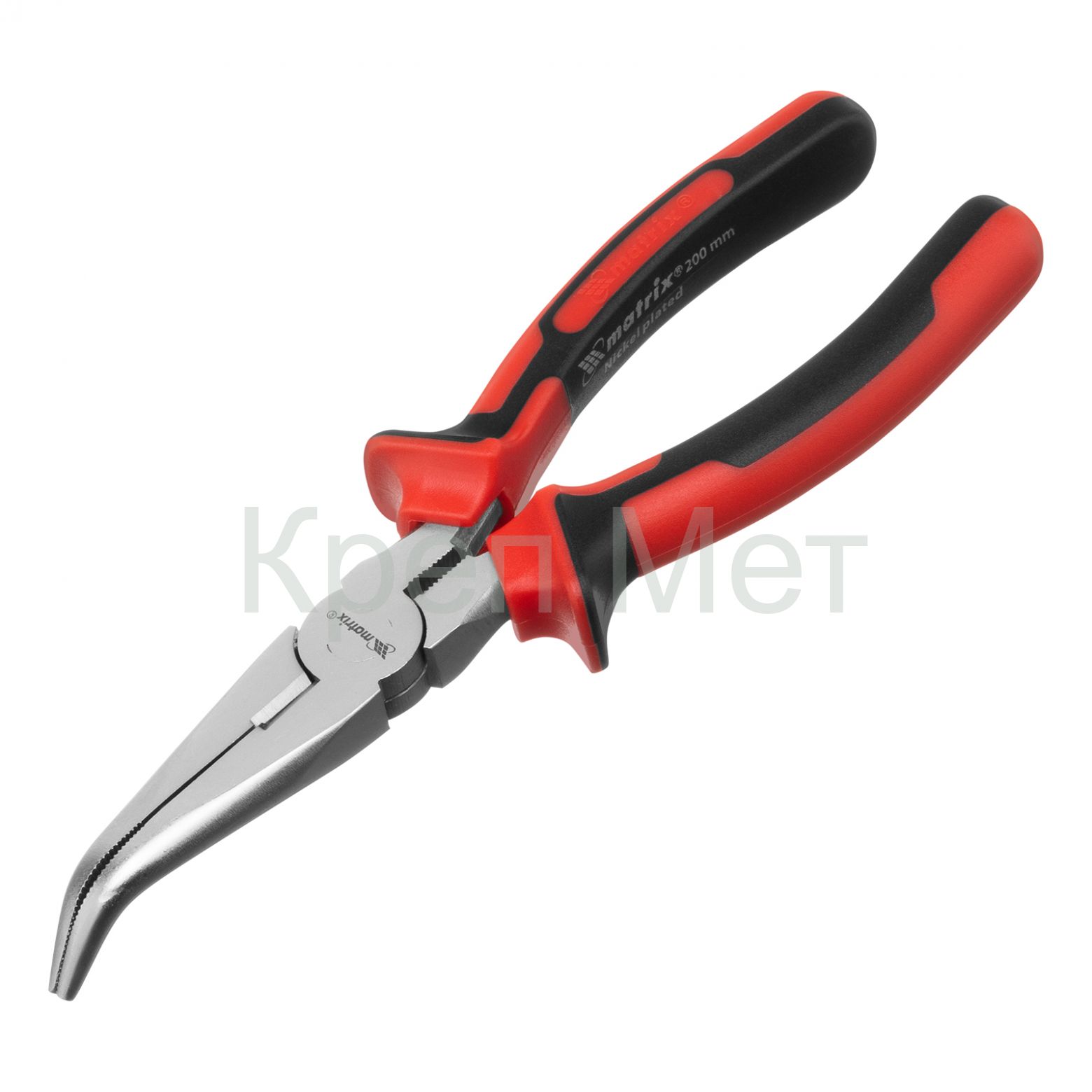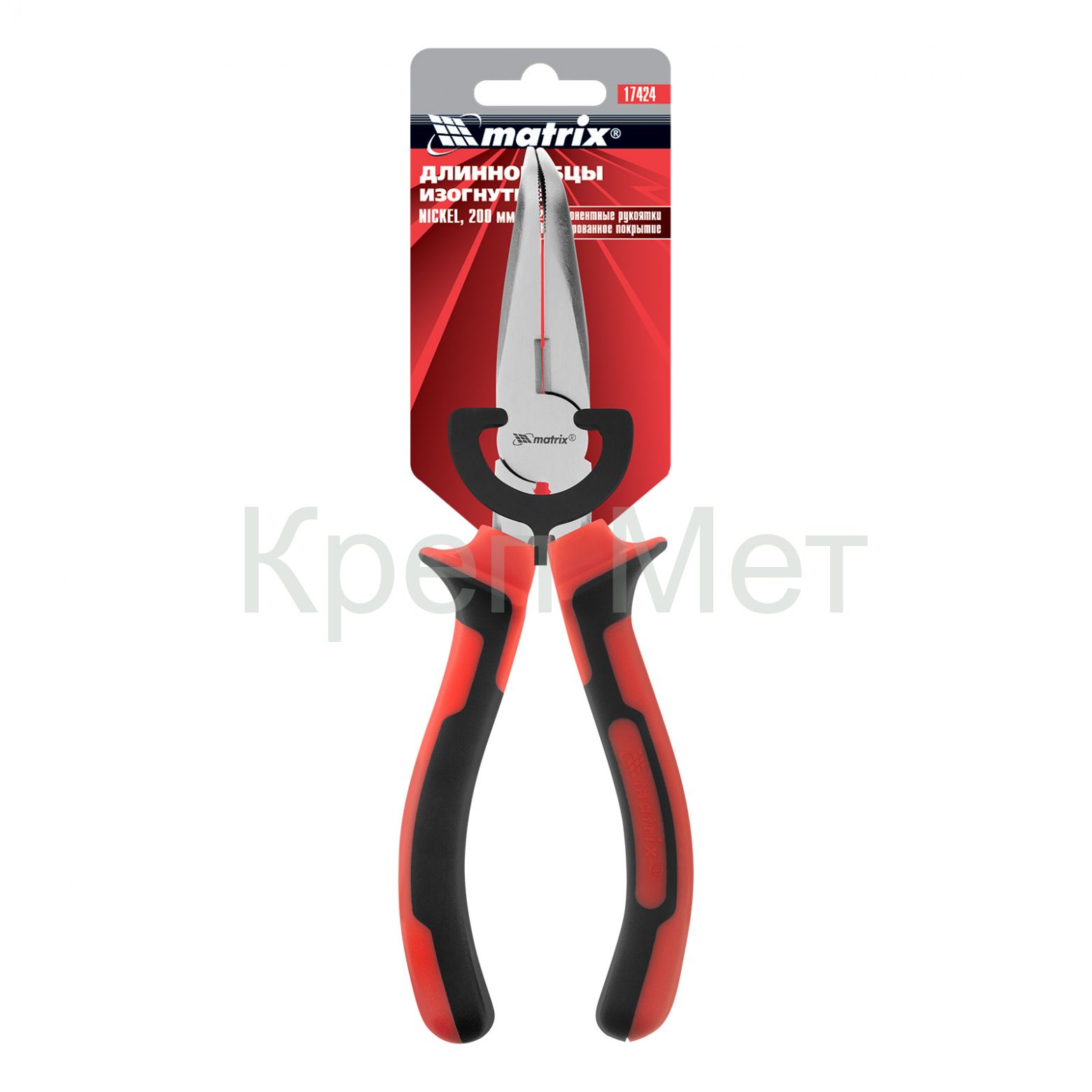 - Длинногубцы изогнутые Nickel, 200 мм, никелированные, двухкомпонентные рукоятки Matrix