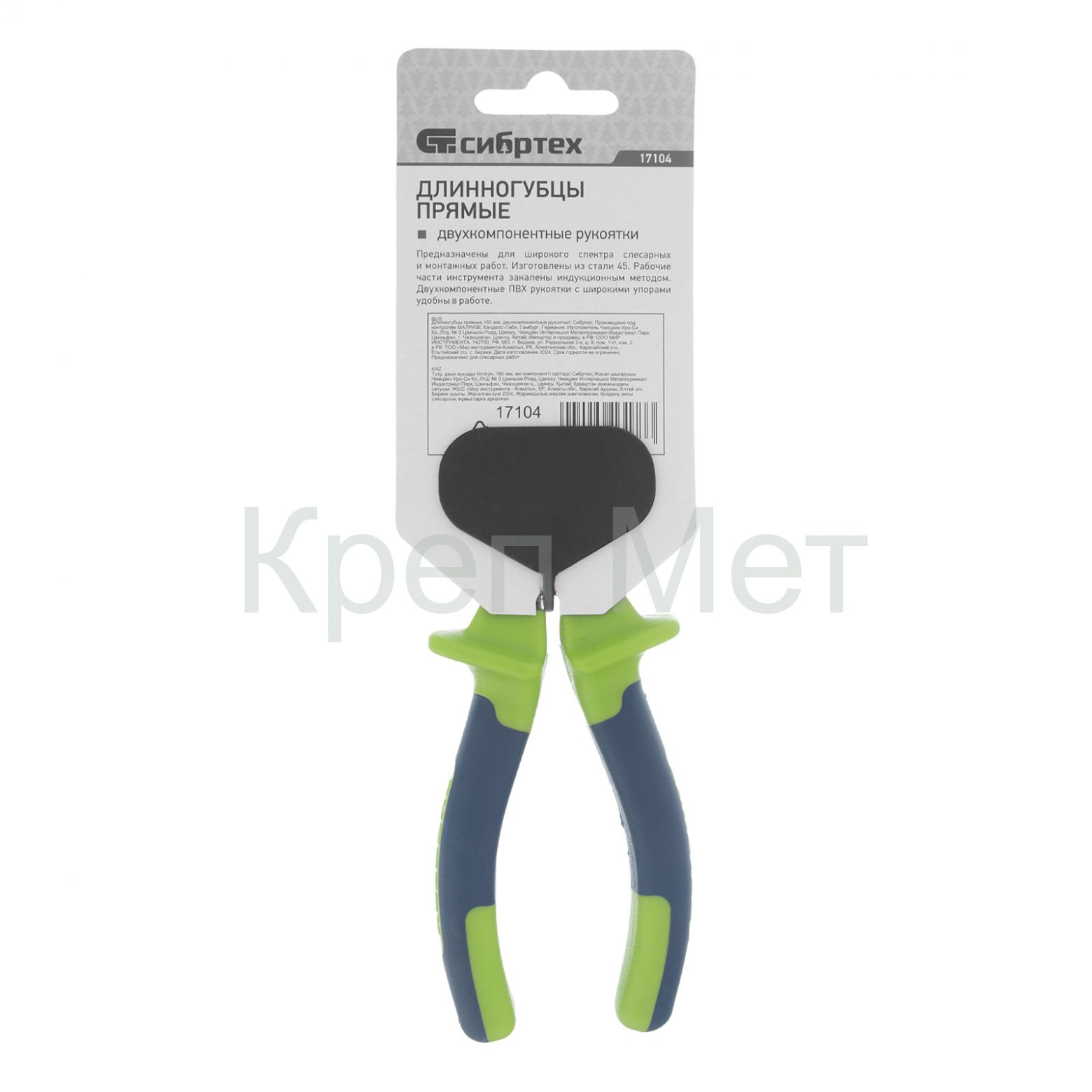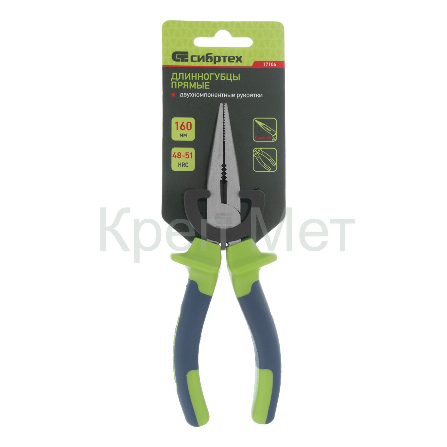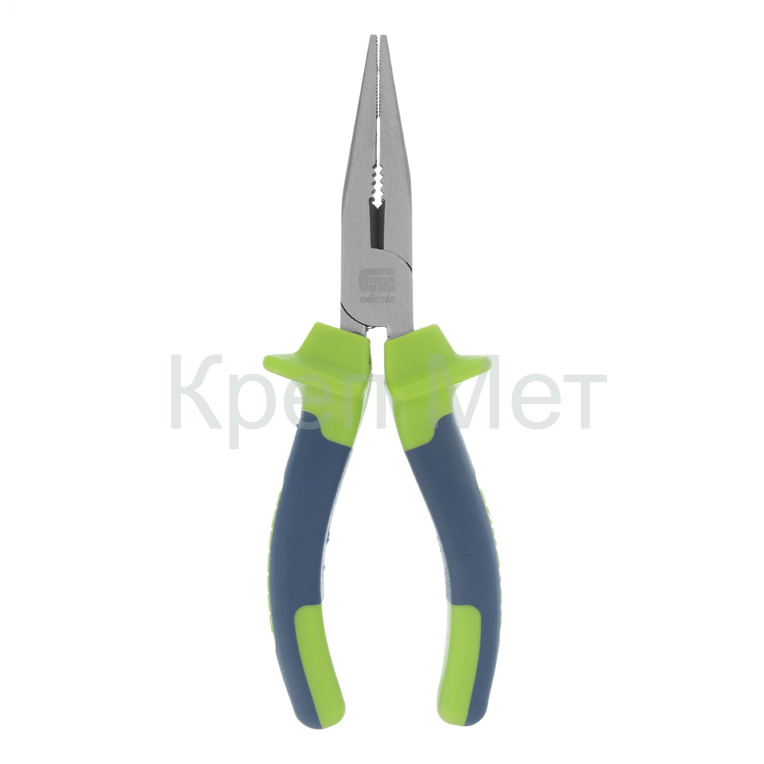 - Длинногубцы прямые, 160 мм, двухкомпонентные рукоятки Сибртех