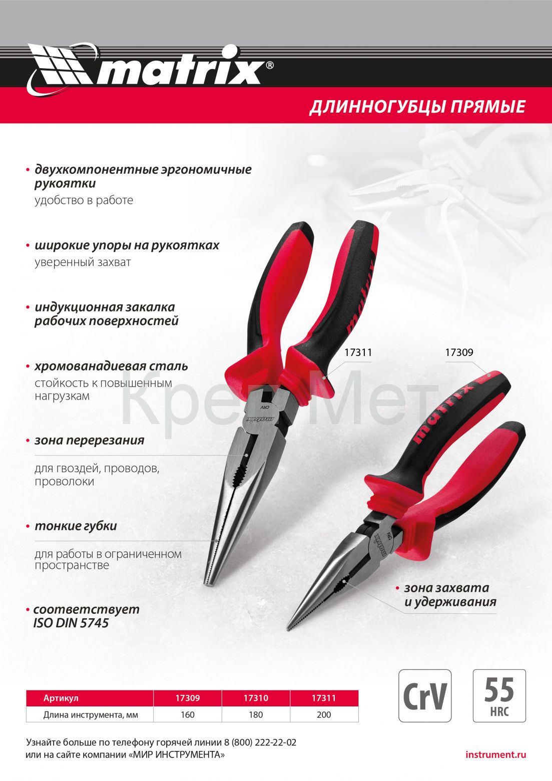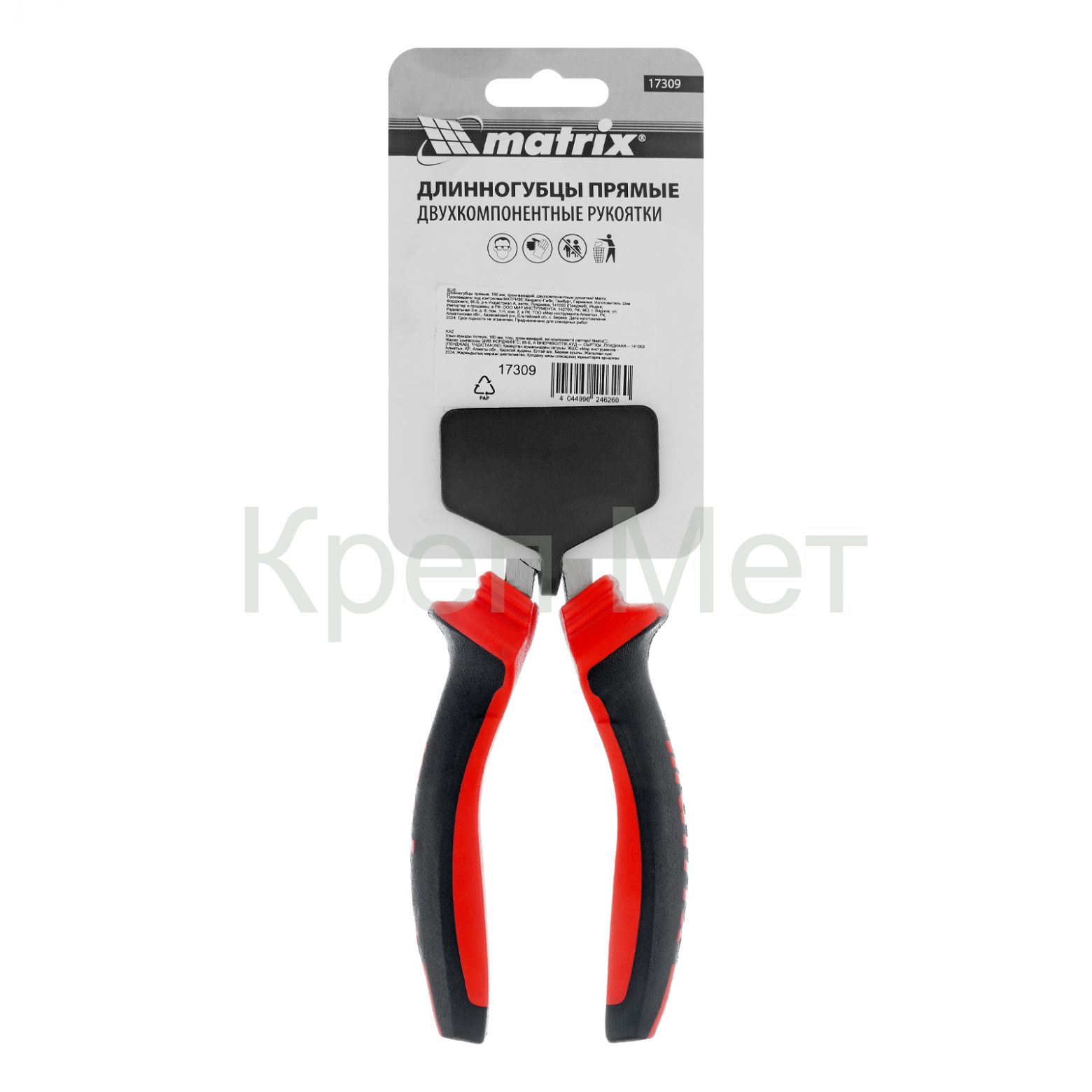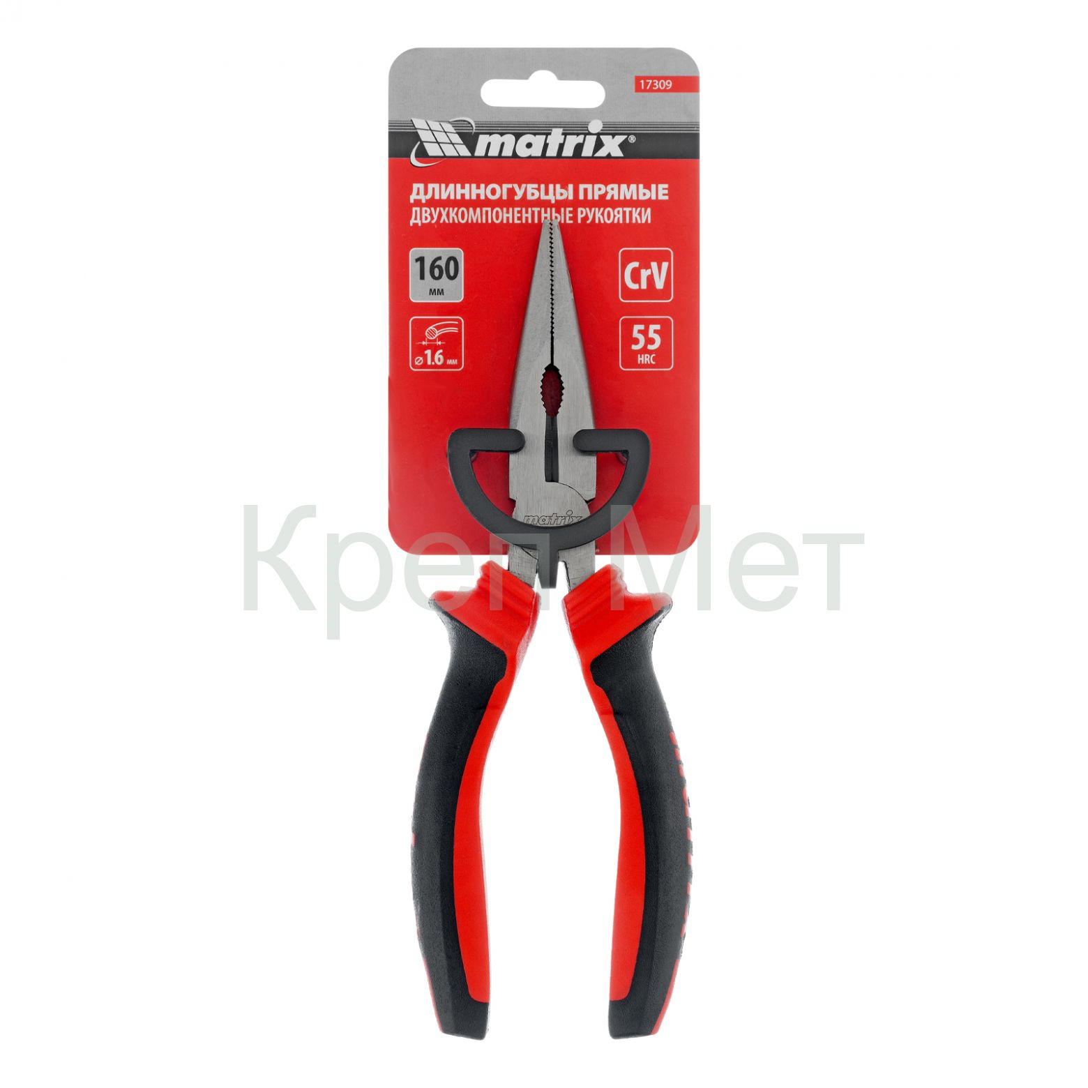 - Длинногубцы прямые, 160 мм, хром-ванадий, двухкомпонентные рукоятки Matrix