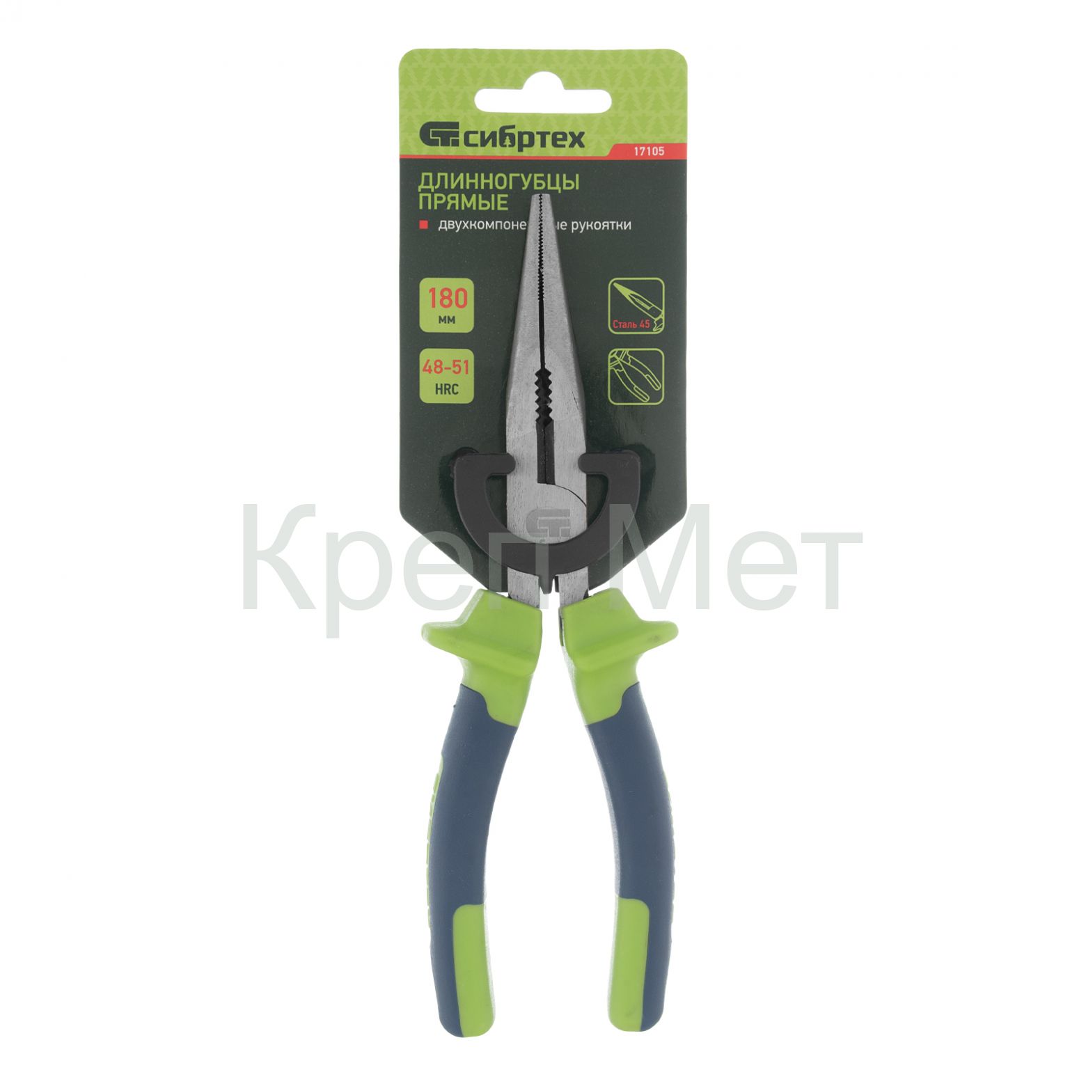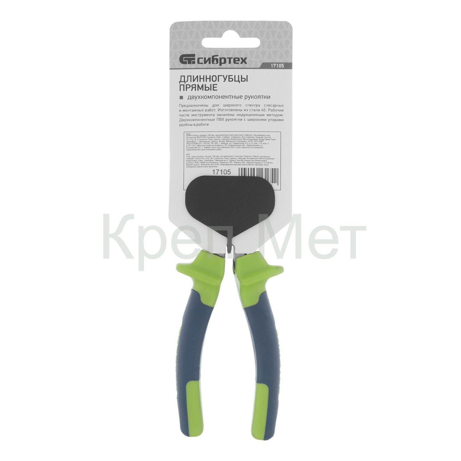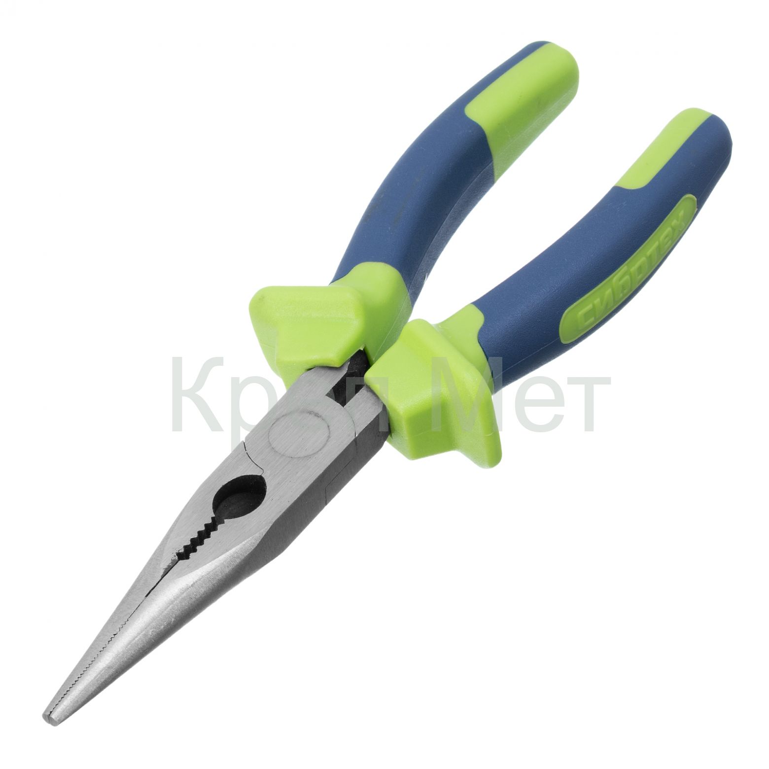 - Длинногубцы прямые, 180 мм, двухкомпонентные рукоятки Сибртех
